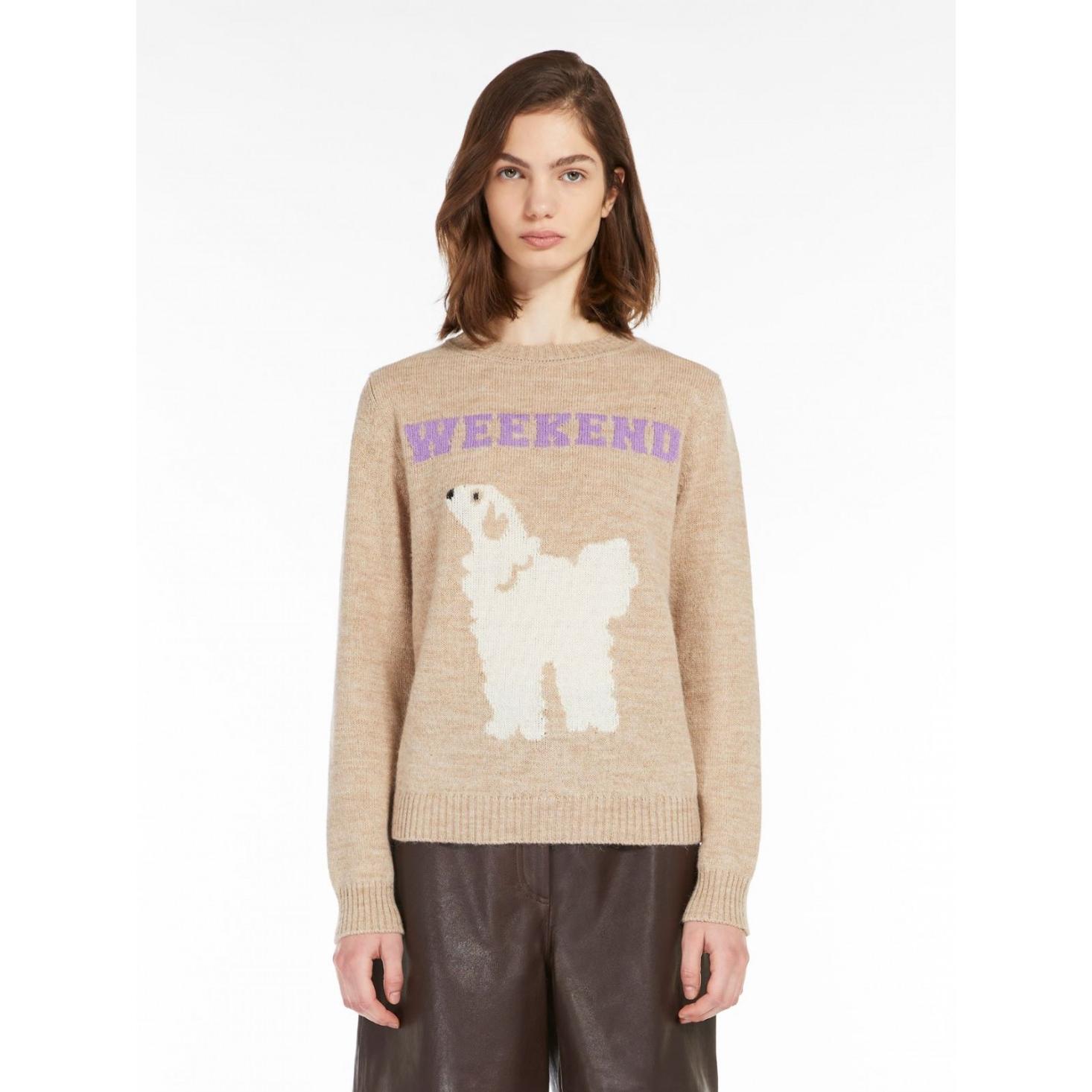 Maglia girocollo realizzata in una pregiata combinazione di alpaca e lana, con motivo intarsiato sul davanti. Modello dalla vestibilità morbida, con volume e lunghezza regolari. Rifinita con bordi a costine.