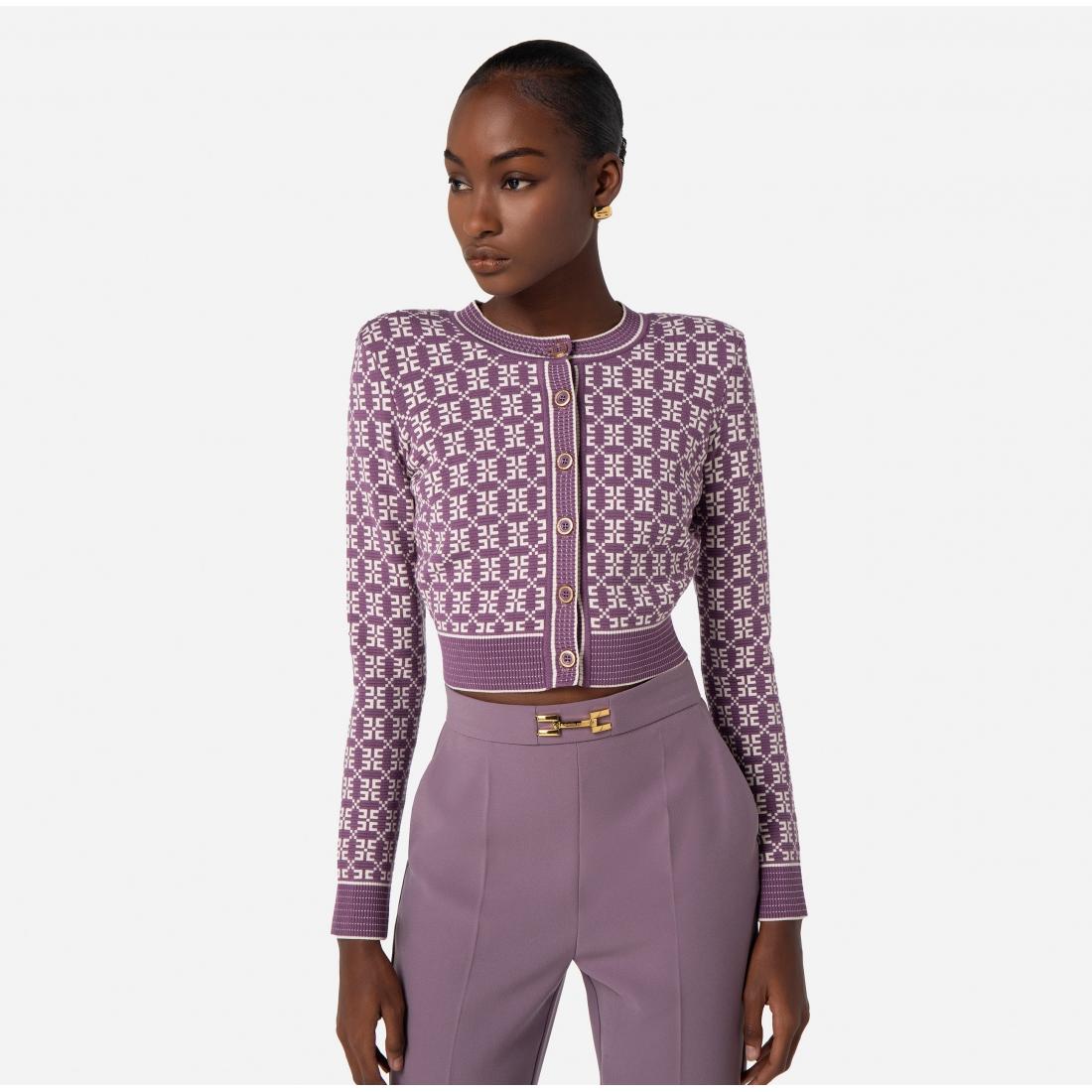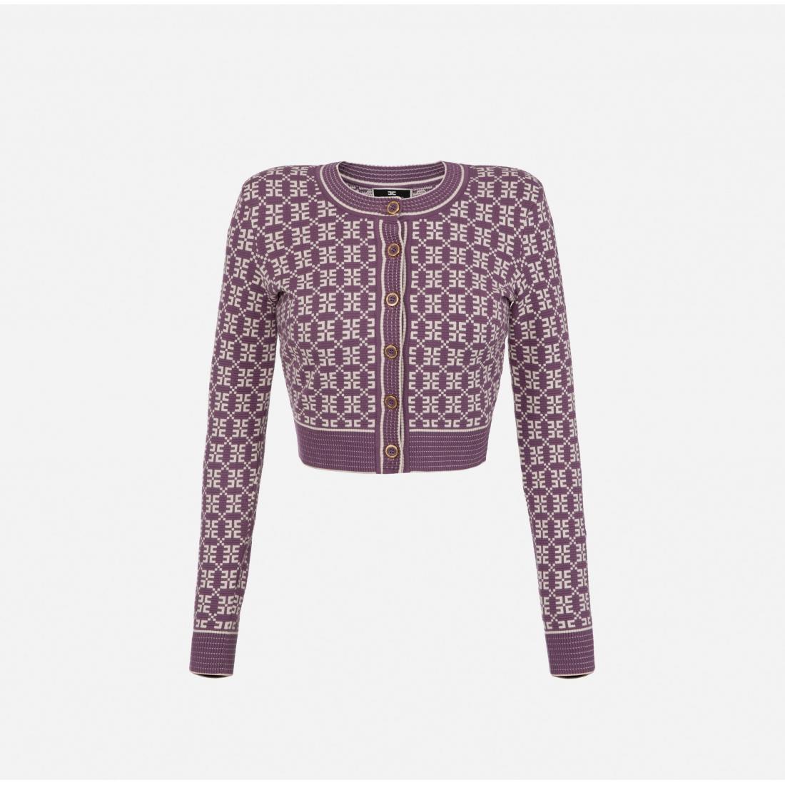 MK61Q36E2 - Cardigan crop in maglia jacquard logo