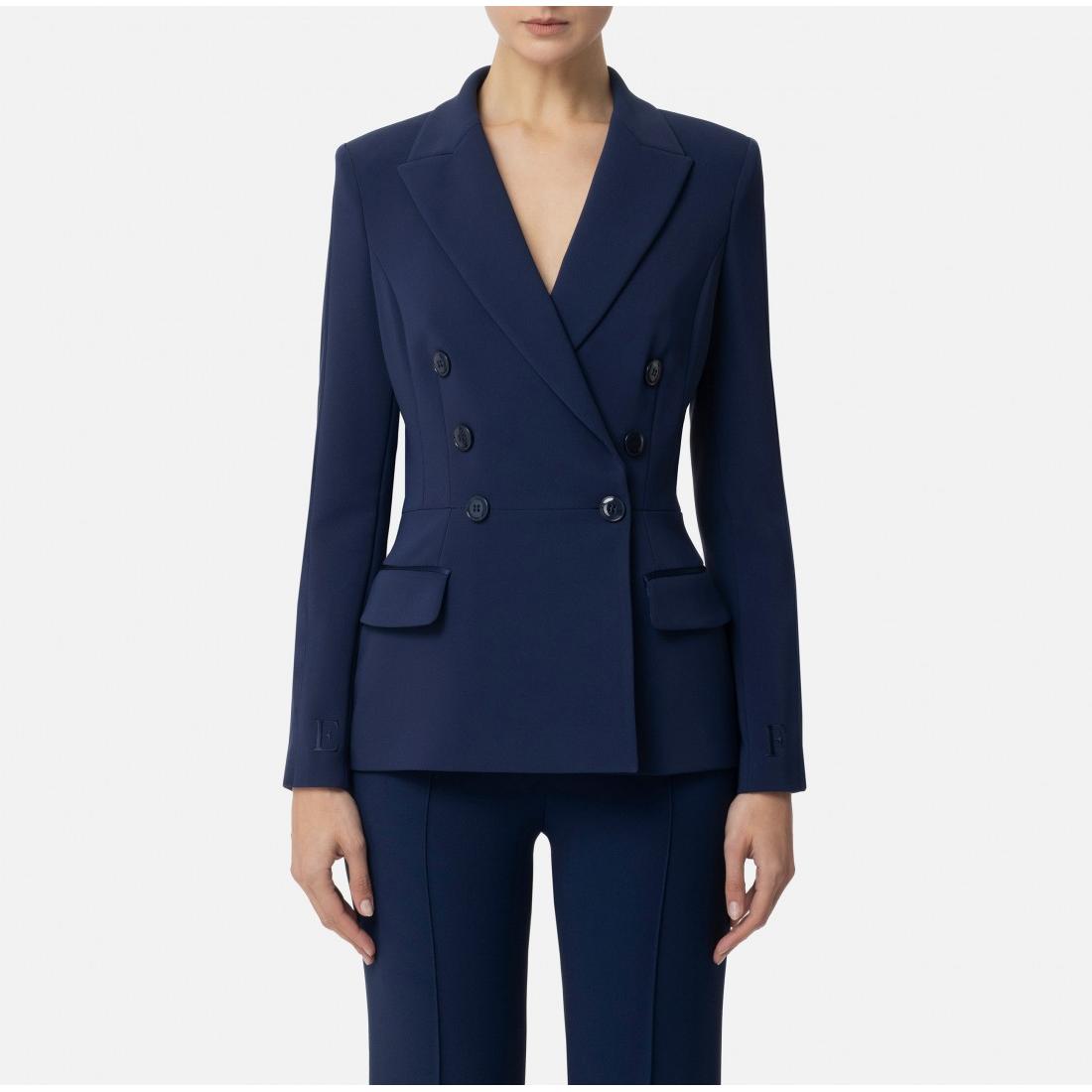 Giacca doppiopetto in crêpe stretch con rever a lancia. Il blazer si distingue per le bande in raso lucido mentre i polsi sono ricamati con le iniziali del brand. Rigore e pulizia dei tagli accentuati dalla vita segnata e dai bottoni in tono. Vestibilità slim. Parte della collezione Essential, per costruire il guardaroba perfetto.