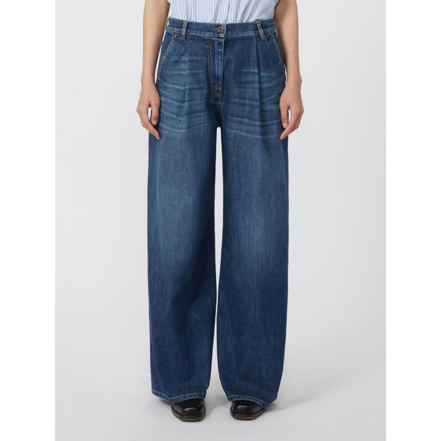 Pantalone dal volume ampio con motivo a pieghe aperte sul davanti.