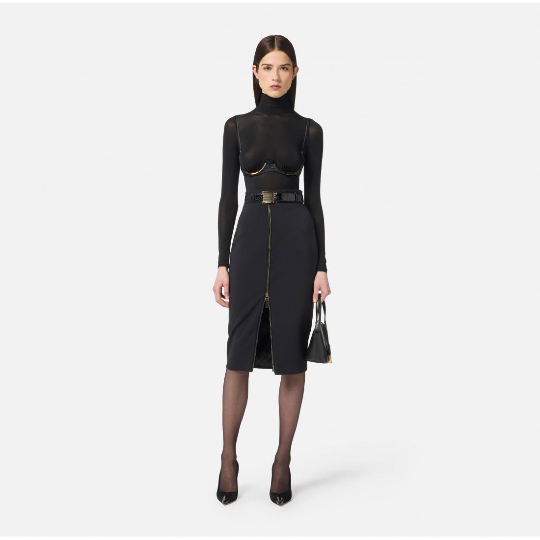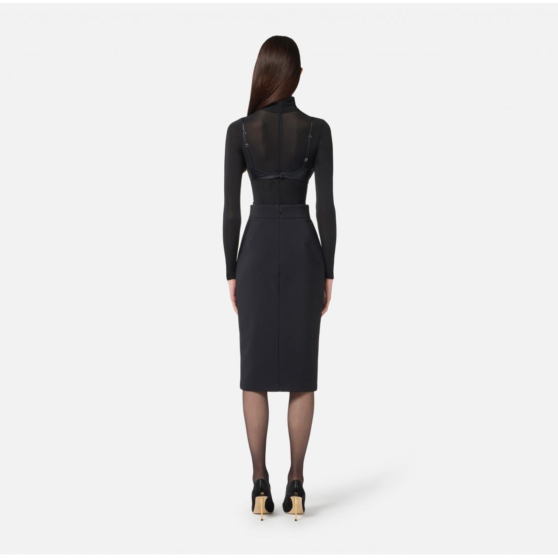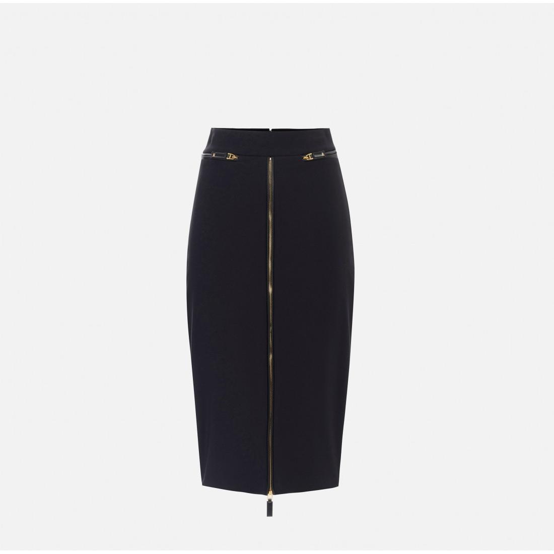 Gonna longuette in crêpe leggero dalla vestibilità aderente. È personalizzata dai motivi di zip incorniciati da filetti tono su tono. La zip centrale crea uno spacco deciso sul davanti. Parte della collezione Essential, per costruire il guardaroba perfetto.