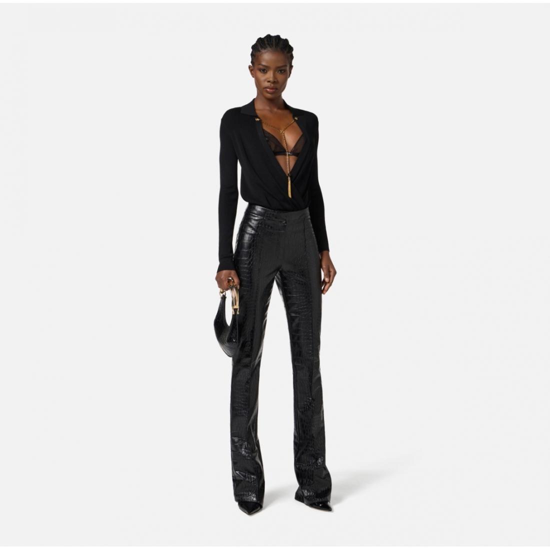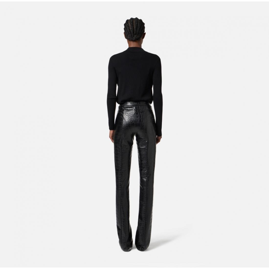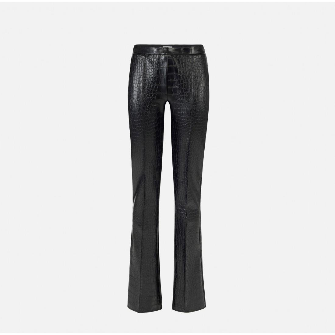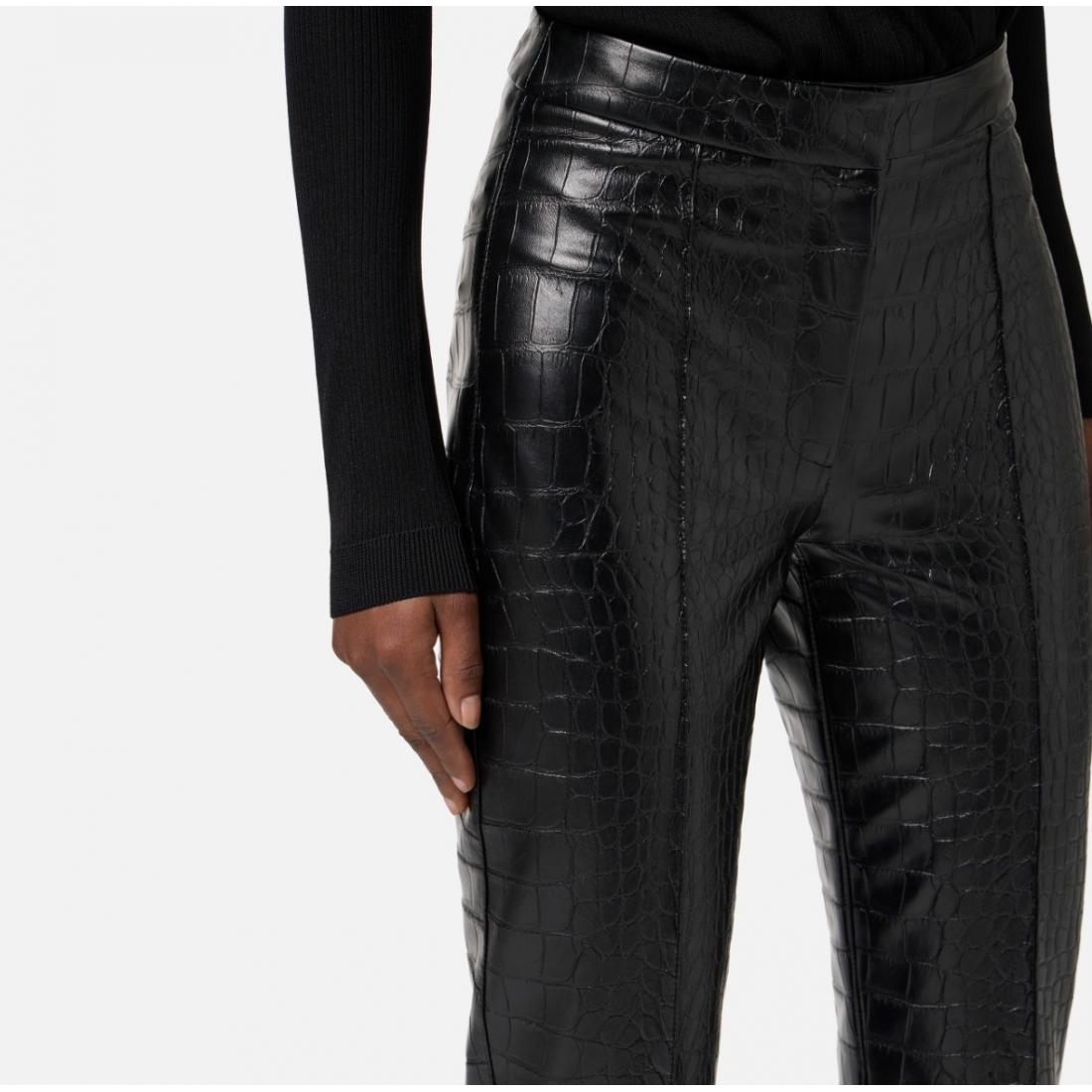 Pantaloni in materiale sintetico effetto pelle dalla vestibilità aderente. Si distinguono per la texture con stampa cocco e il fascione con taschini.