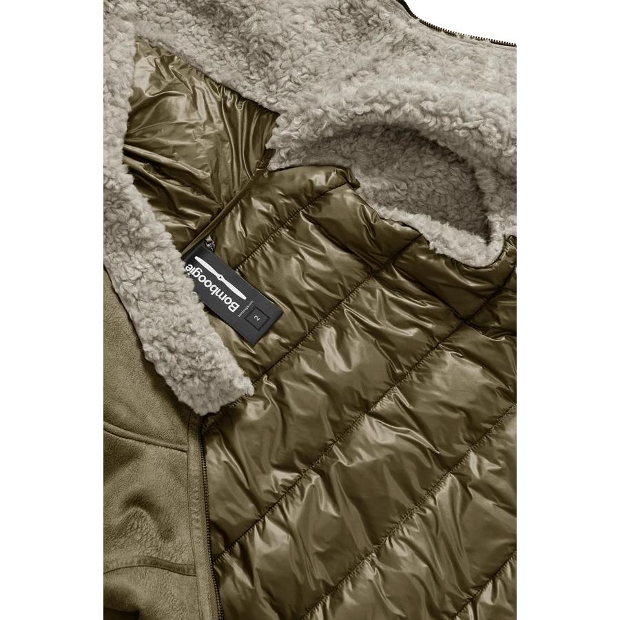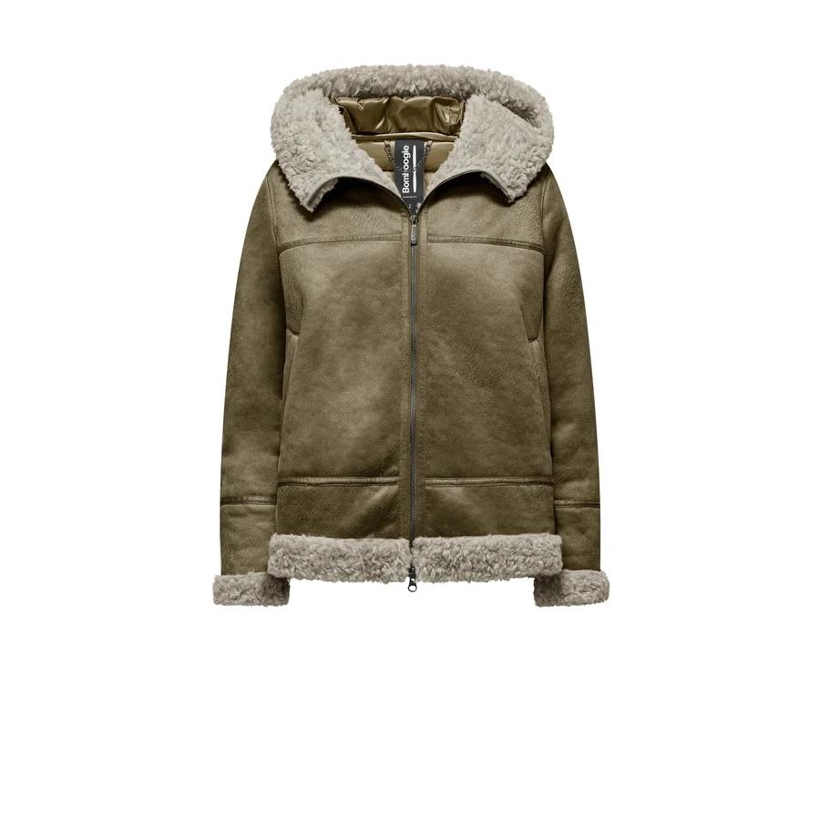 Tessuto sintetico effetto shearling per un aspetto attuale e una sensazione di calore avvolgente Pannello frontale e cappuccio in eco-suede con pelliccetta ricciolina per un comfort morbido Schiena e maniche in nylon trapuntato creano un elegante contrasto materico e una linea essenziale Imbottitura in poliestere di peso medio ideale per offrire isolamento nelle stagioni fredde Chiusura frontale con zip che consente di modulare la protezione dal vento con praticità,Vestibilità : regular