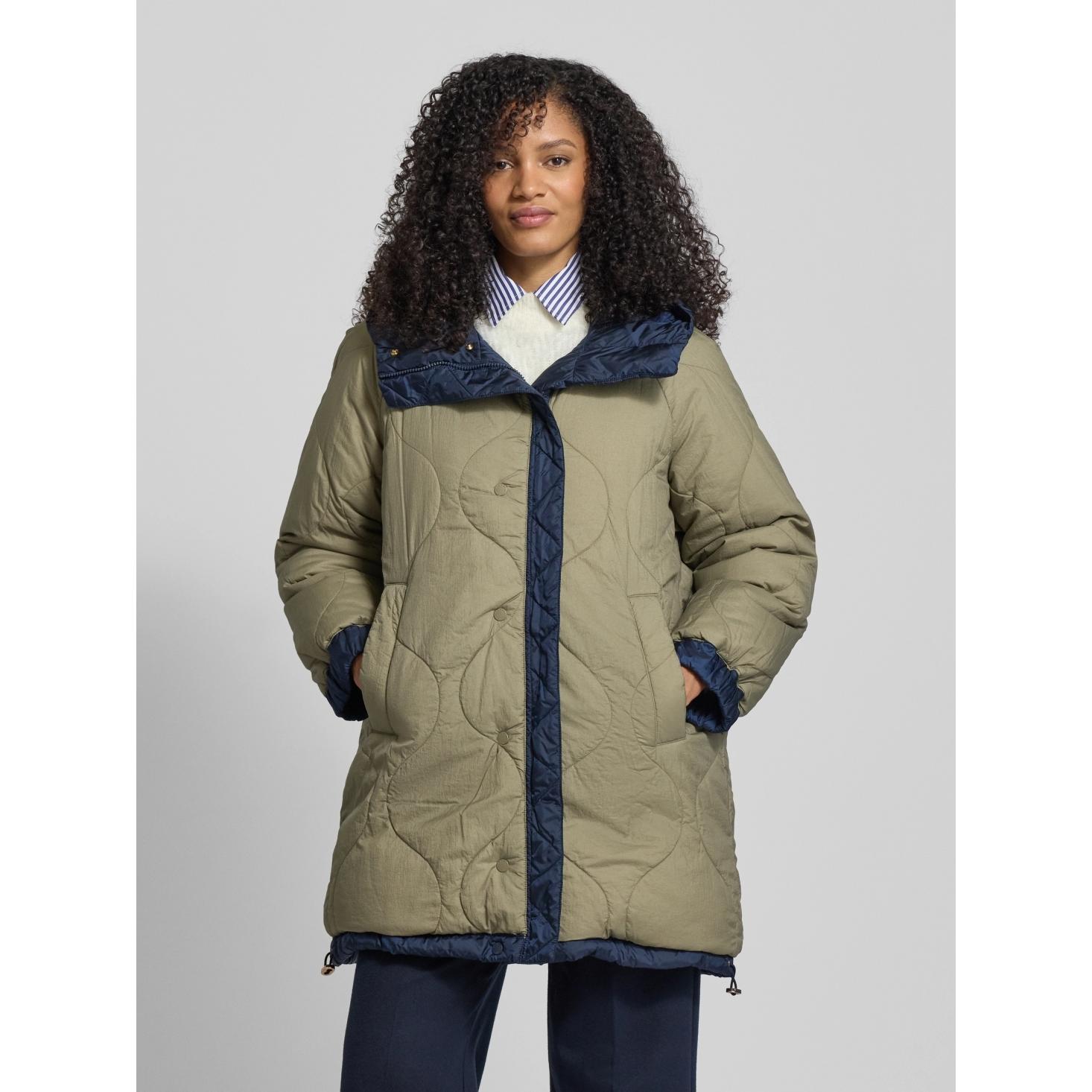 Parka midi reversibile con collo alto e cappuccio a coulisse, maniche raglan con polsino elastico e coulisse regolabile al fondo.<P< Parka in tela antigoccia con trapuntatura a righe orizzontali, Interno trapuntato con motivo a "cipolla", Linea morbida, Chiusura con zip coperta e bottoni a pressione, Tasche a filettone su entrambi i lati, Lettering Weekend Max Mara stampato nello sprone interno, Imbottiti in piuma d'oca.