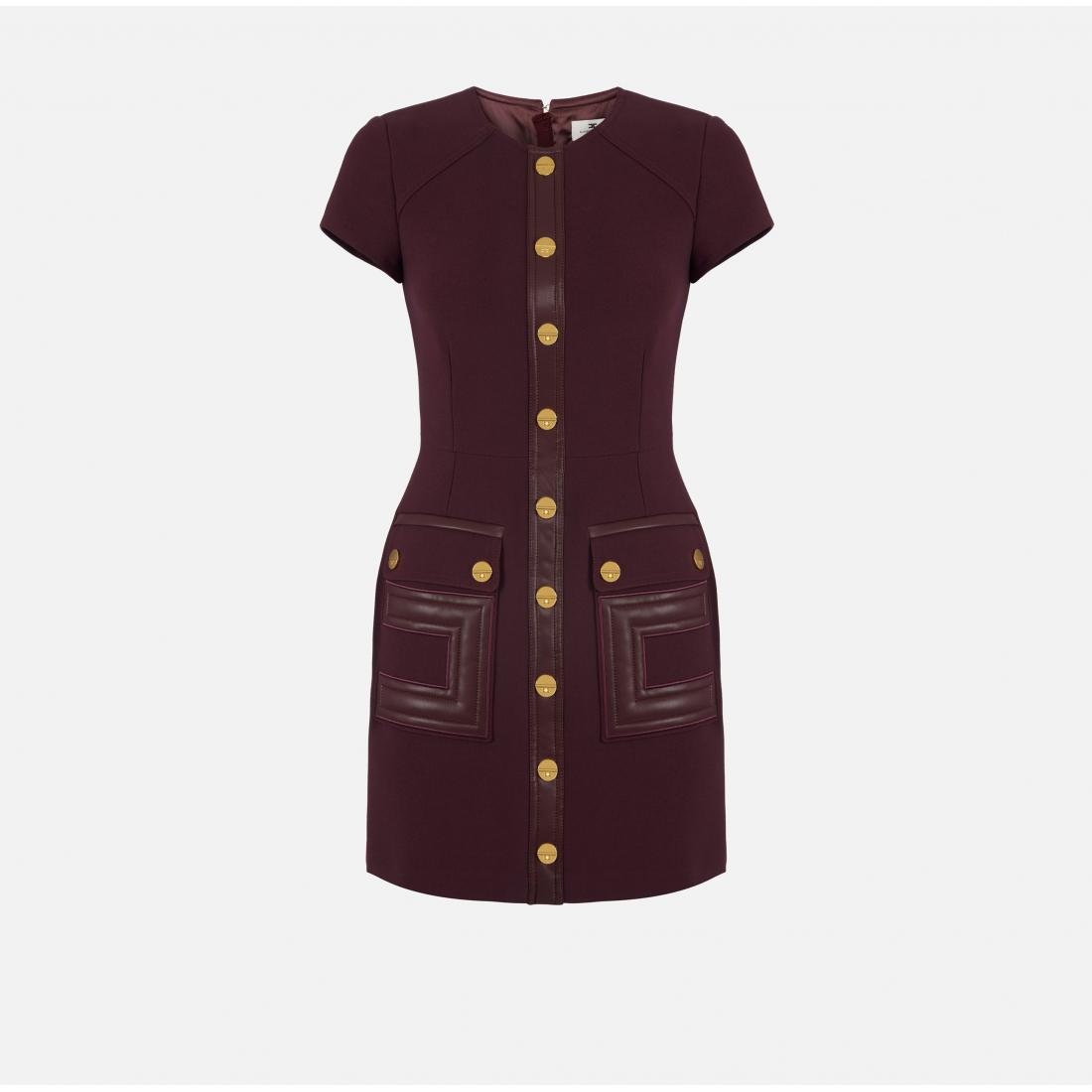 Abito in doppio crêpe dalla vestibilità slim. Il vestito ha maniche ad aletta e si distingue per i dettagli in tono che donano definizione come il cannoncino e le patch, con logo embossed e ricamate sulle tasche. I bottoni in metallo dorato decorano il davanti con note di luce.