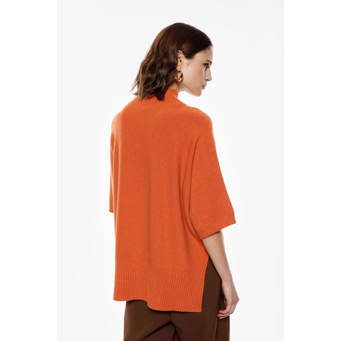 Linee ampie e struttura rilassata definiscono questo maglione a maniche corte, arricchito da un collo alto e ampi bordi a costine. Ideale per comporre look dinamici e distintivi, permette molteplici combinazioni con capi sartoriali e contemporanei, valorizzando la ricercatezza di ogni stile personale.