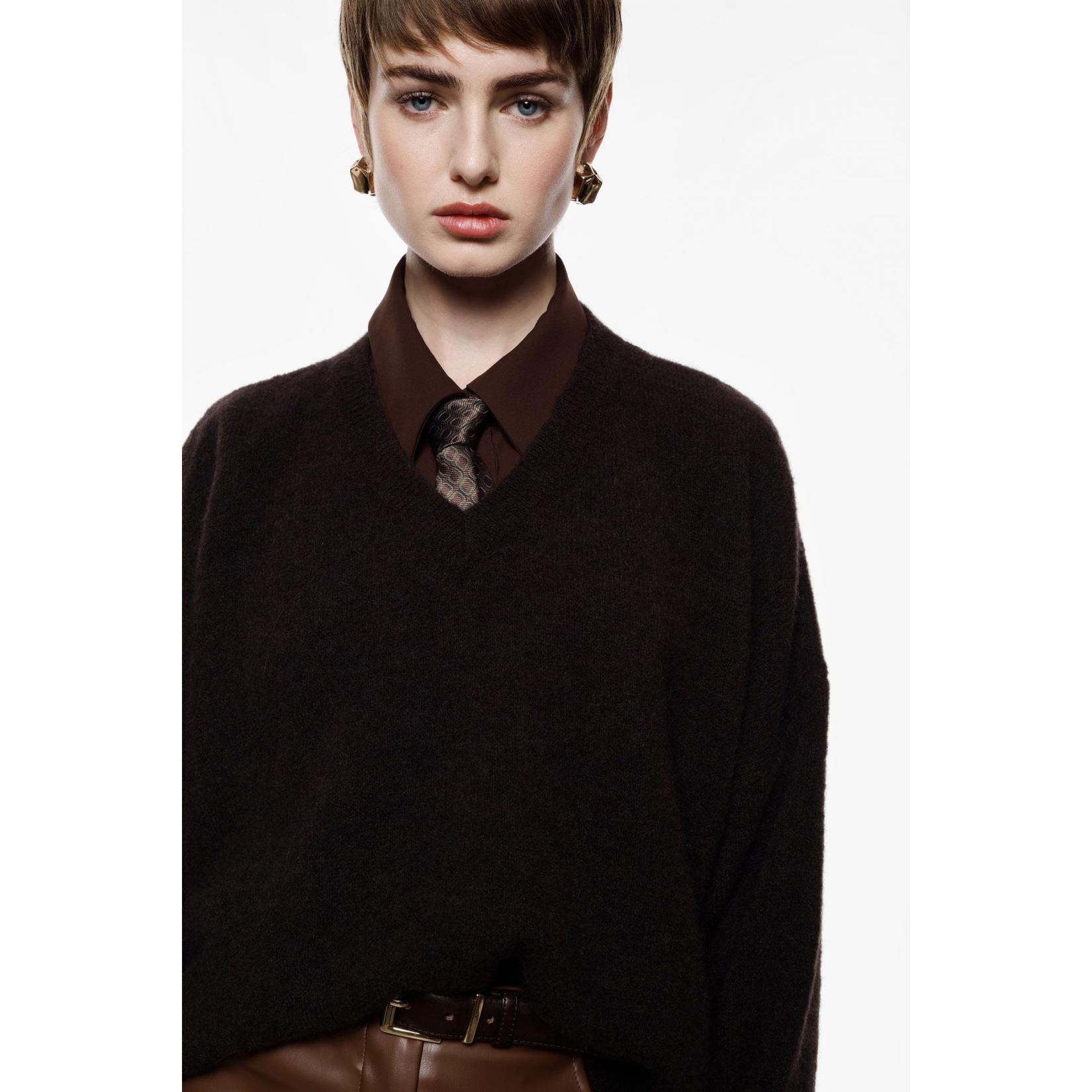 Questo maglione pullover offre un design versatile con un elegante scollo a v. Le maniche lunghe contribuiscono a un comfort ottimale, mentre la trama a tinta unita permette di abbinarlo facilmente a qualsiasi capo nel guardaroba. Perfetto per esprimere personalità con sobrietà, è la scelta ideale per chi apprezza lo stile metropolitano.