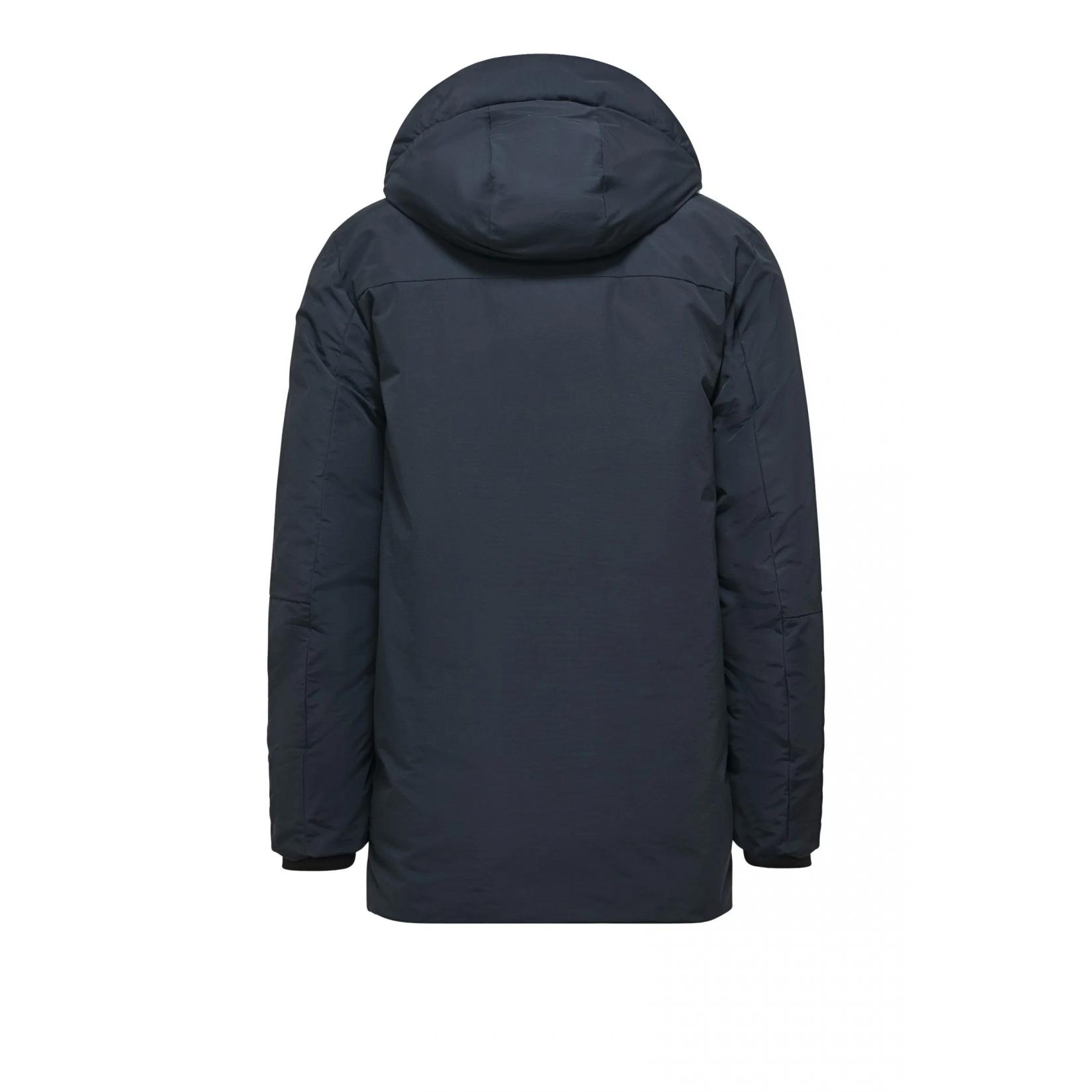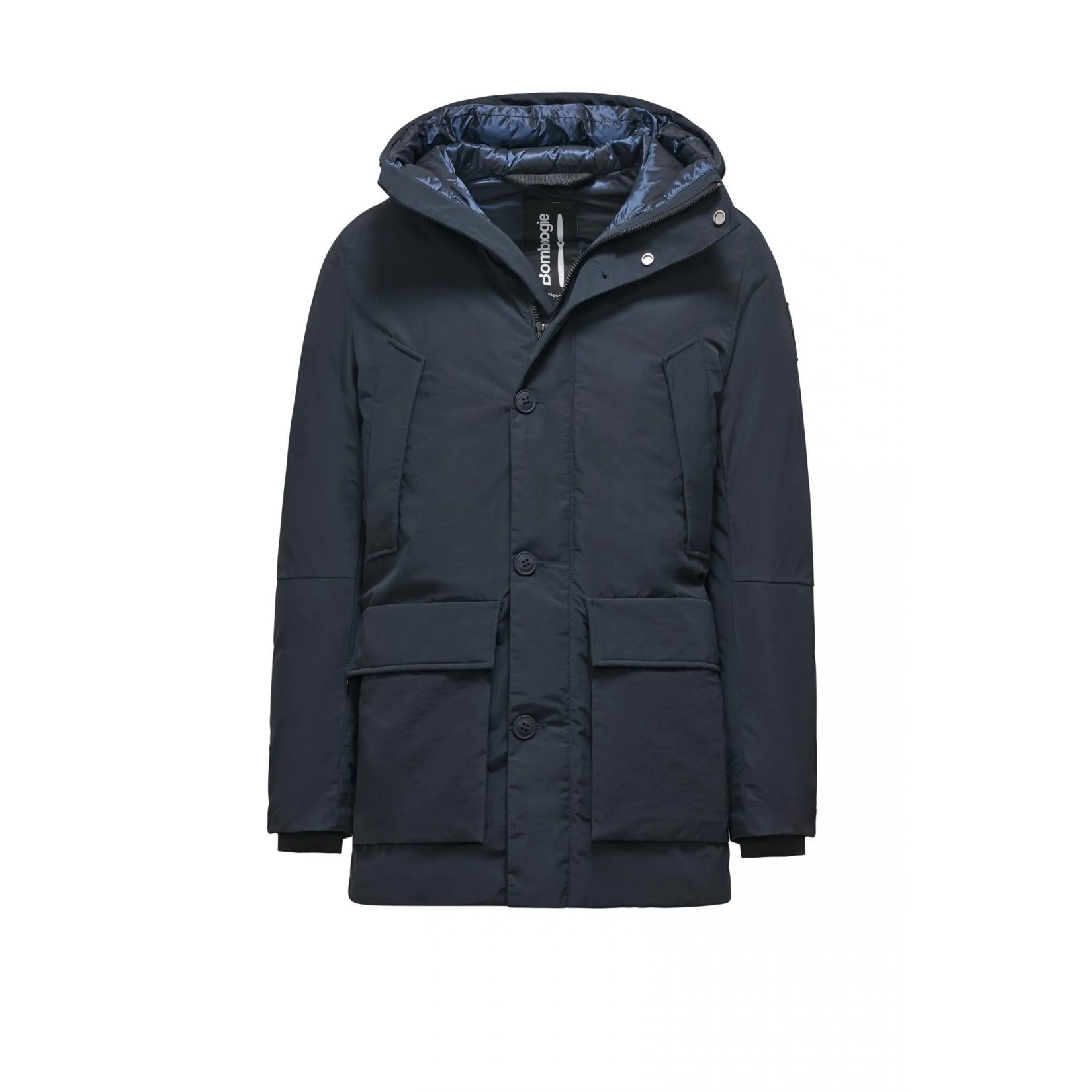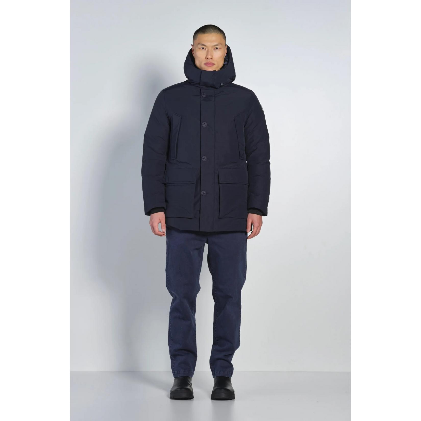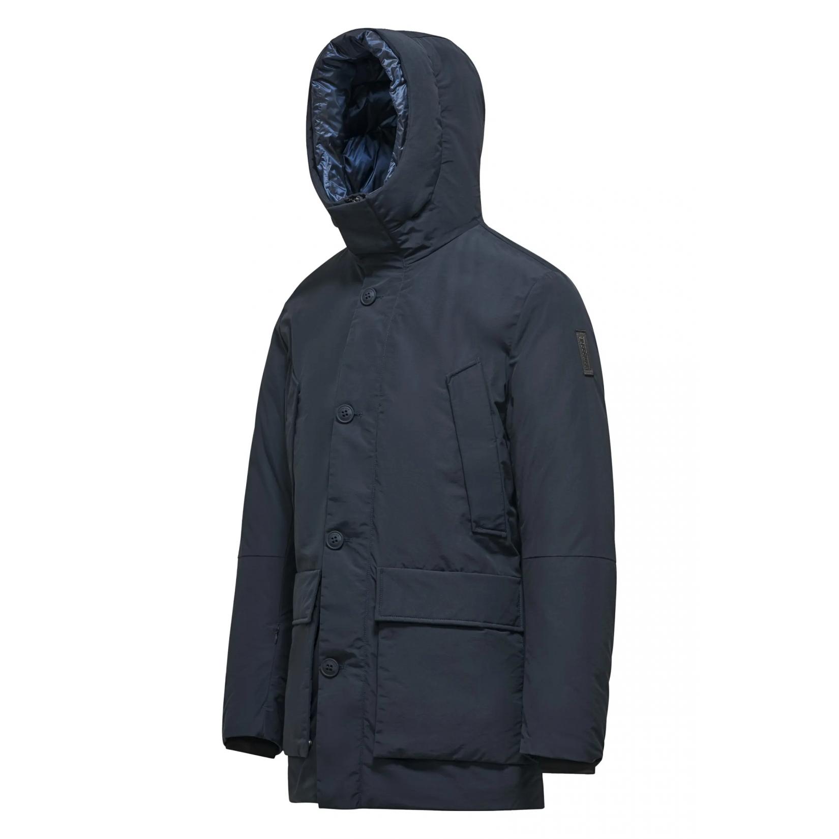 Parka dalla linea dritta ed essenziale, con maxi cappuccio, resistente alla pioggia e al vento, creato per i giorni più freddi d’inverno. Realizzato in: tessuto cotone/nylon spalmato sul retro, idrorepellente, antivento. Imbottitura vera piuma 90:10 (700 fill power). Chiusura con zip centrale sormontata da cannoncino antivento con bottoni con asola. Doppie tasche frontali. Taschino su manica con zip. Taschini interni con zip. Maxi cappuccio con coulisse.