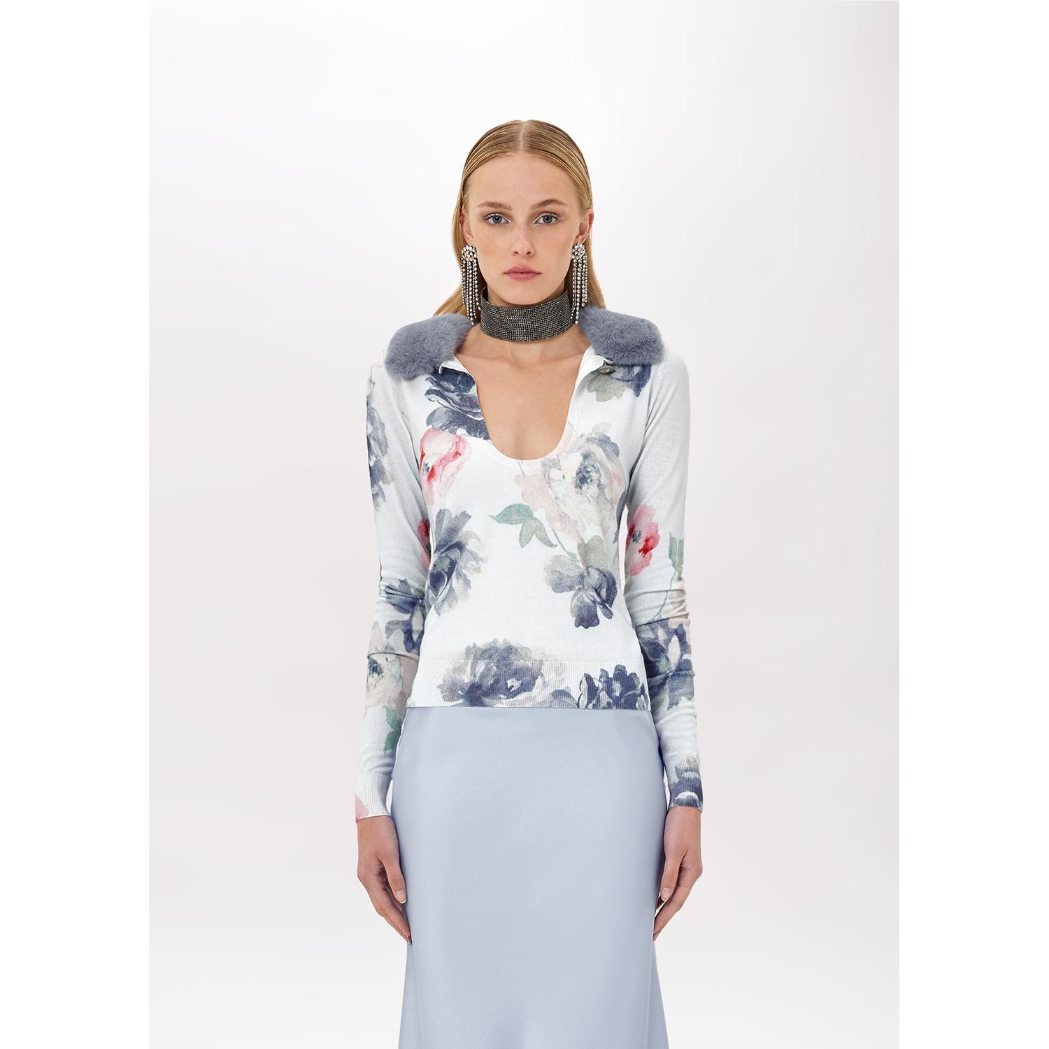 500342-L0569 (RF3033 MAB01) - MAGLIA A FIORI CON FAUX FUR