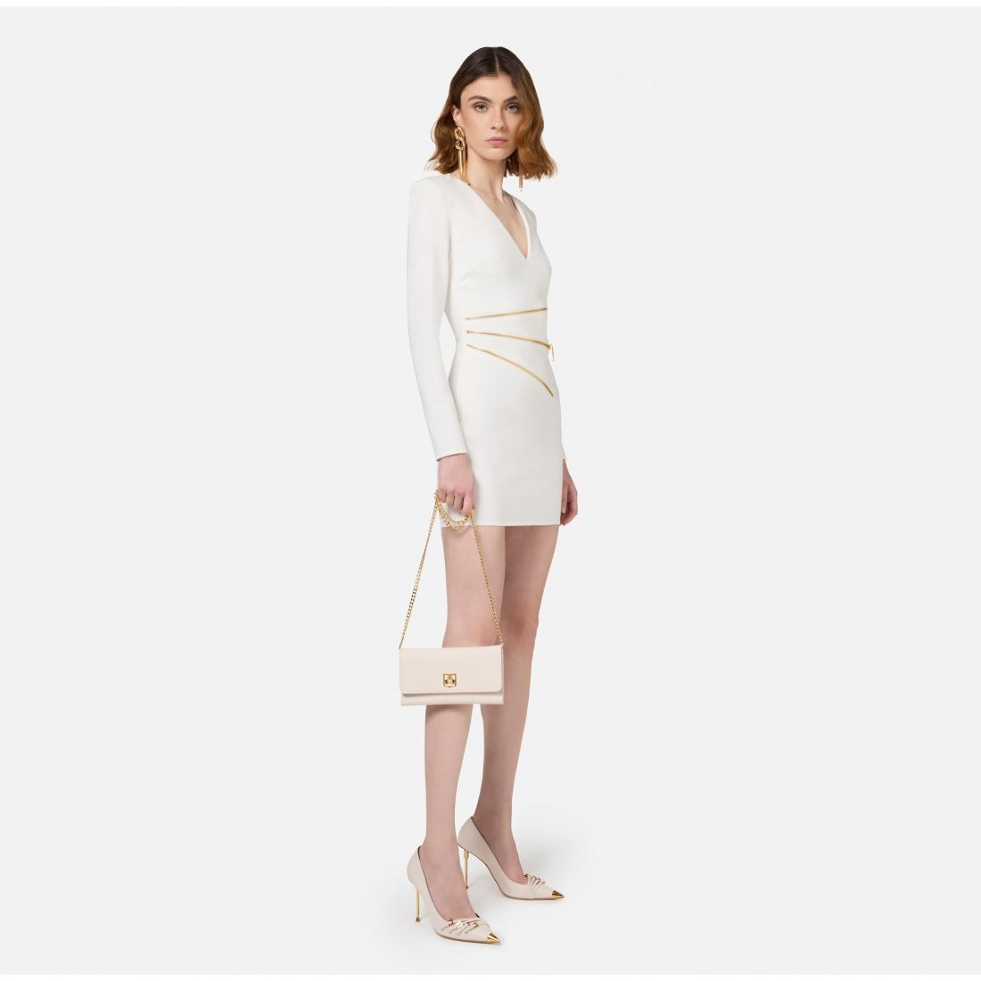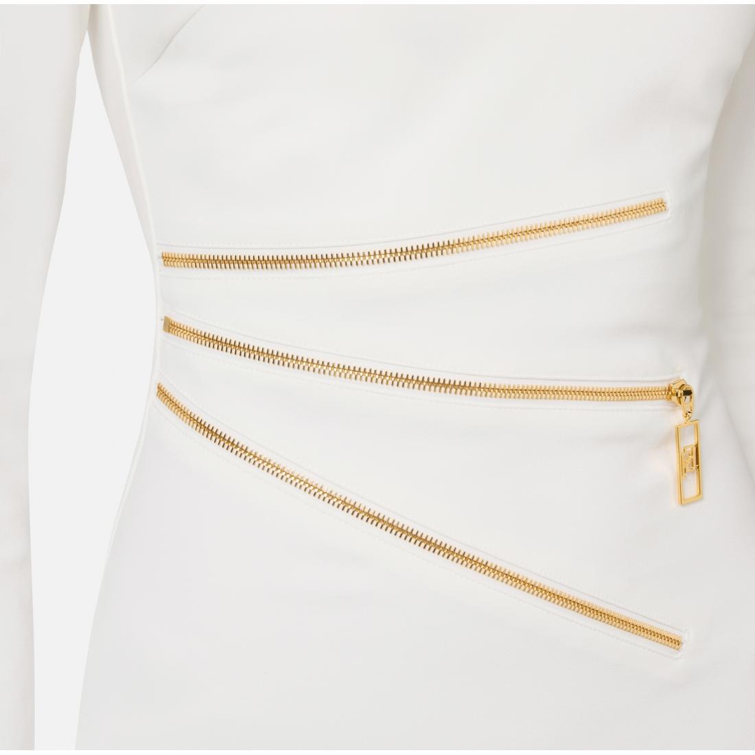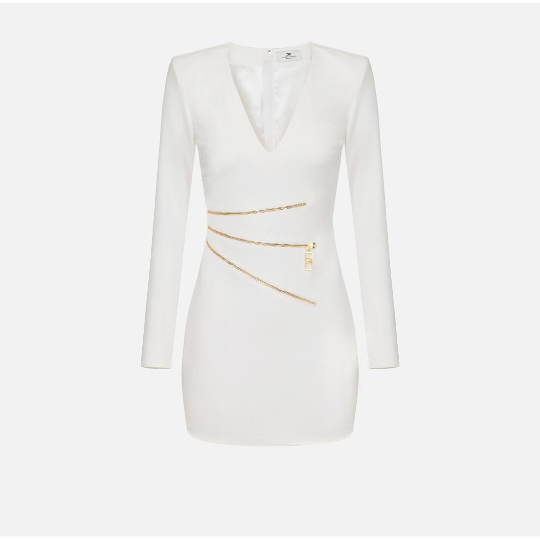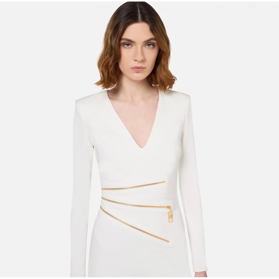 Miniabito in crêpe a maniche lunghe a guanto e scollo a V. È caratterizzato da zip con tiretto logo in metallo dorato posizionate sul fianco. Fodera in raso, Spalline imbottite, Zip in metallo dorato, Lunghezza 83 cm per la taglia 40 IT, La modella è alta 177 cm e indossa una taglia 40 IT, Vestibilità Slim, Composizione articolo, 47% Viscosa 22% Cotone 21% Poliammide 10% Elastane.