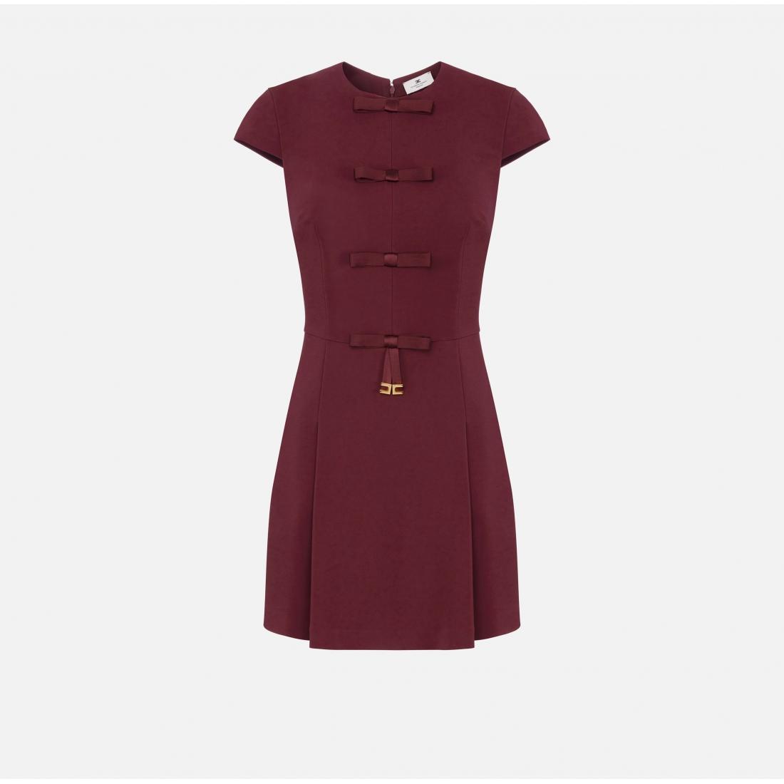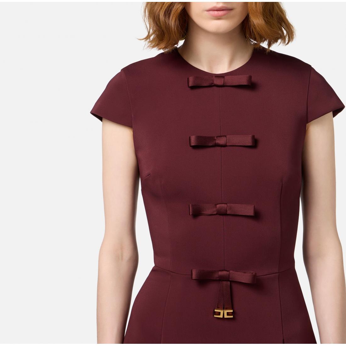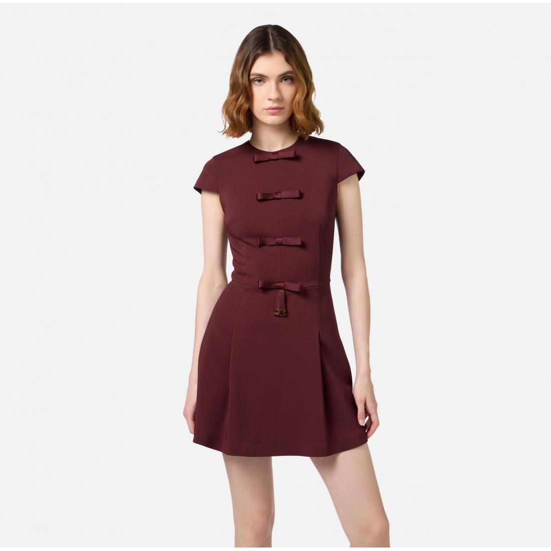 Miniabito in crêpe a maniche corte alla francese con scollo a giro e gonna svasata al fondo. È caratterizzato da una sequenza di fiocchi in raso con finalini in metallo dorato. Fodera in raso monogram, Zip invisibile sul retro, Accessorio in metallo dorato, Lunghezza 85 cm per la taglia 40 IT, La modella è alta 177 cm e indossa una taglia 40 IT, Vestibilità Slim, Composizione articolo, 96% Viscosa 04% Elastane.