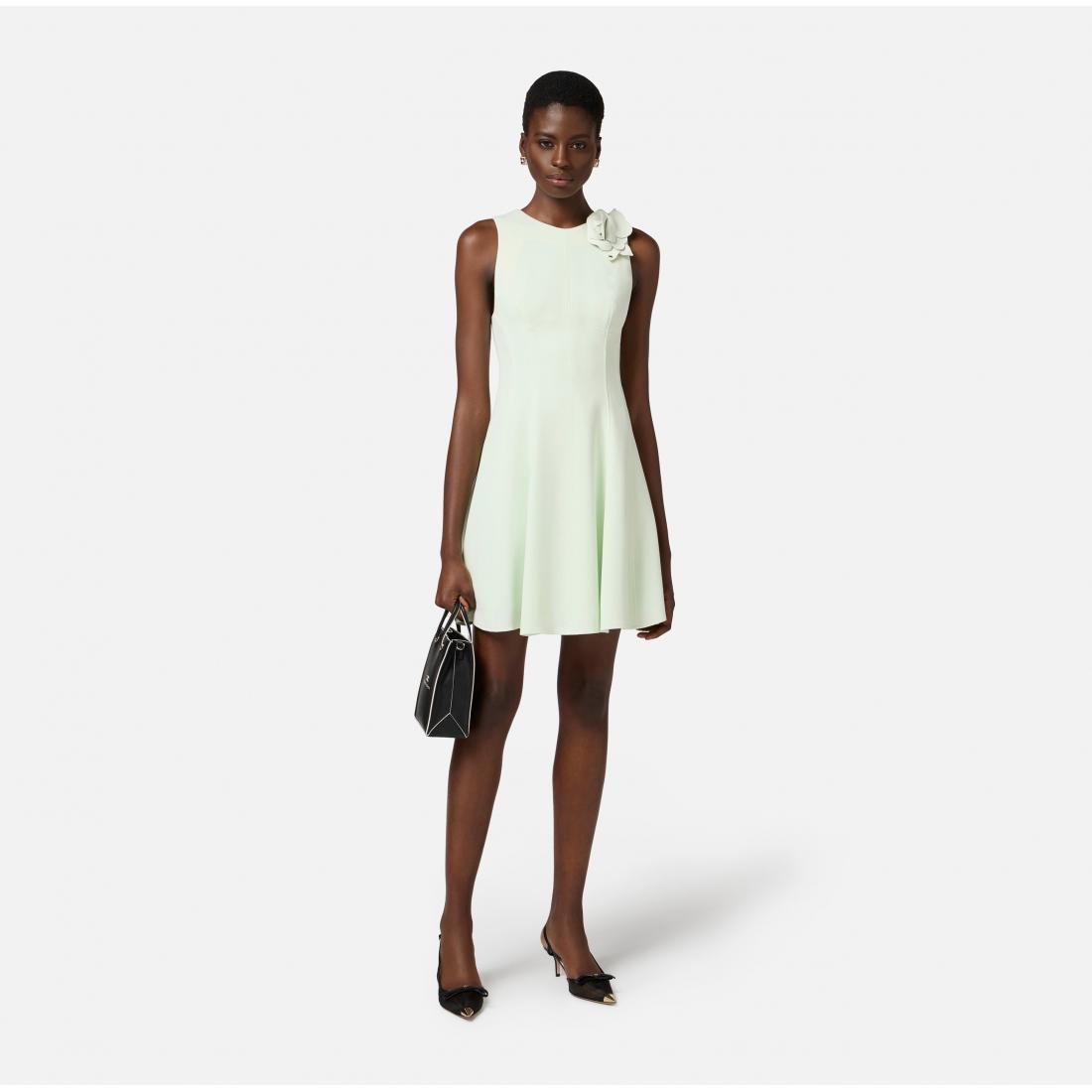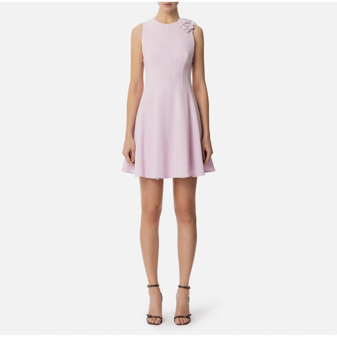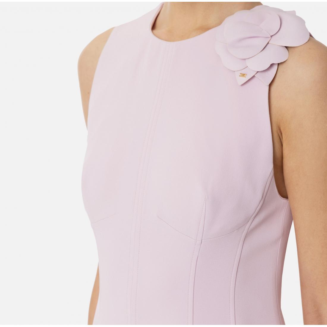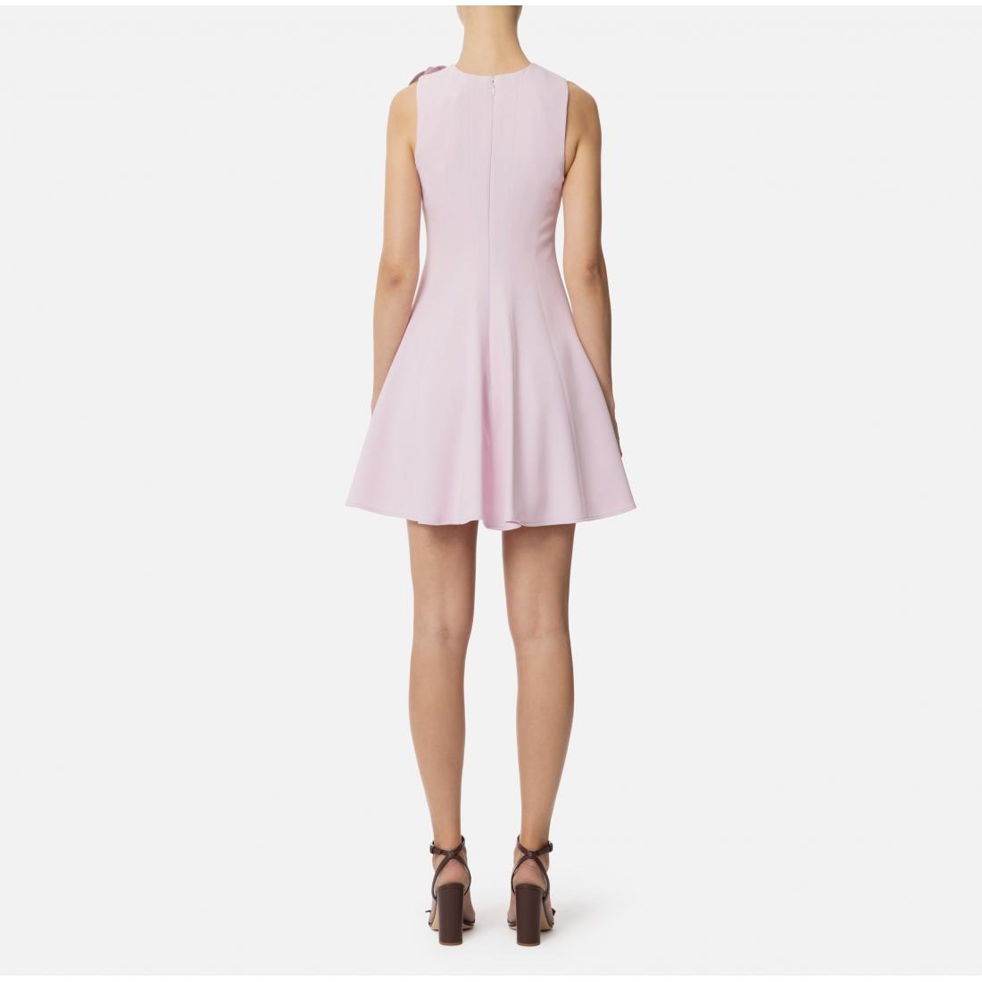 Abito smanicato in crêpe leggero con vestibilità slim.  con fiocco e logo in metallo dorato. Le impunture esaltano i tagli svasati del capo.