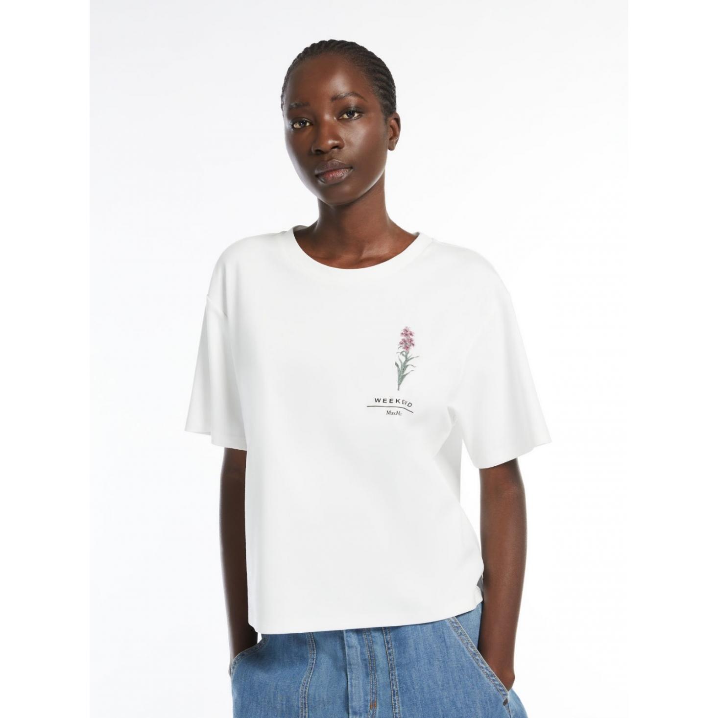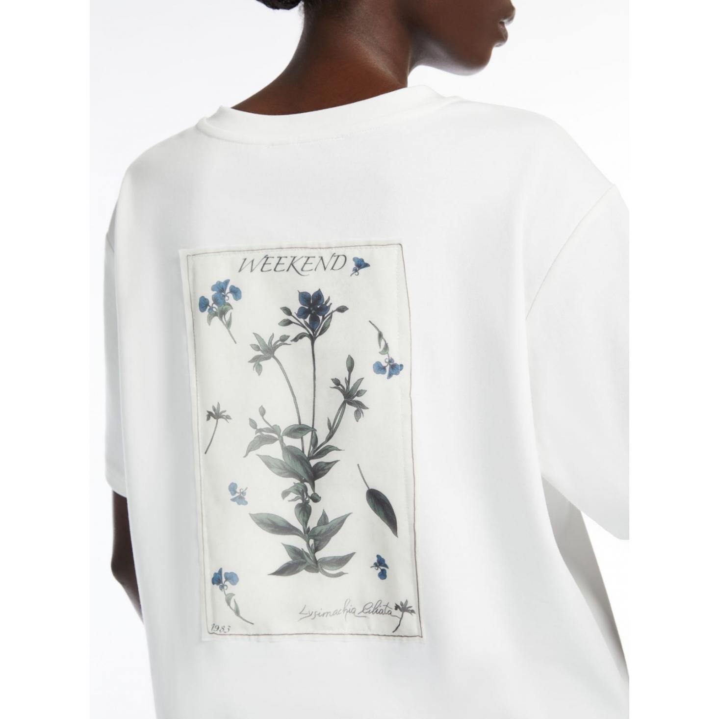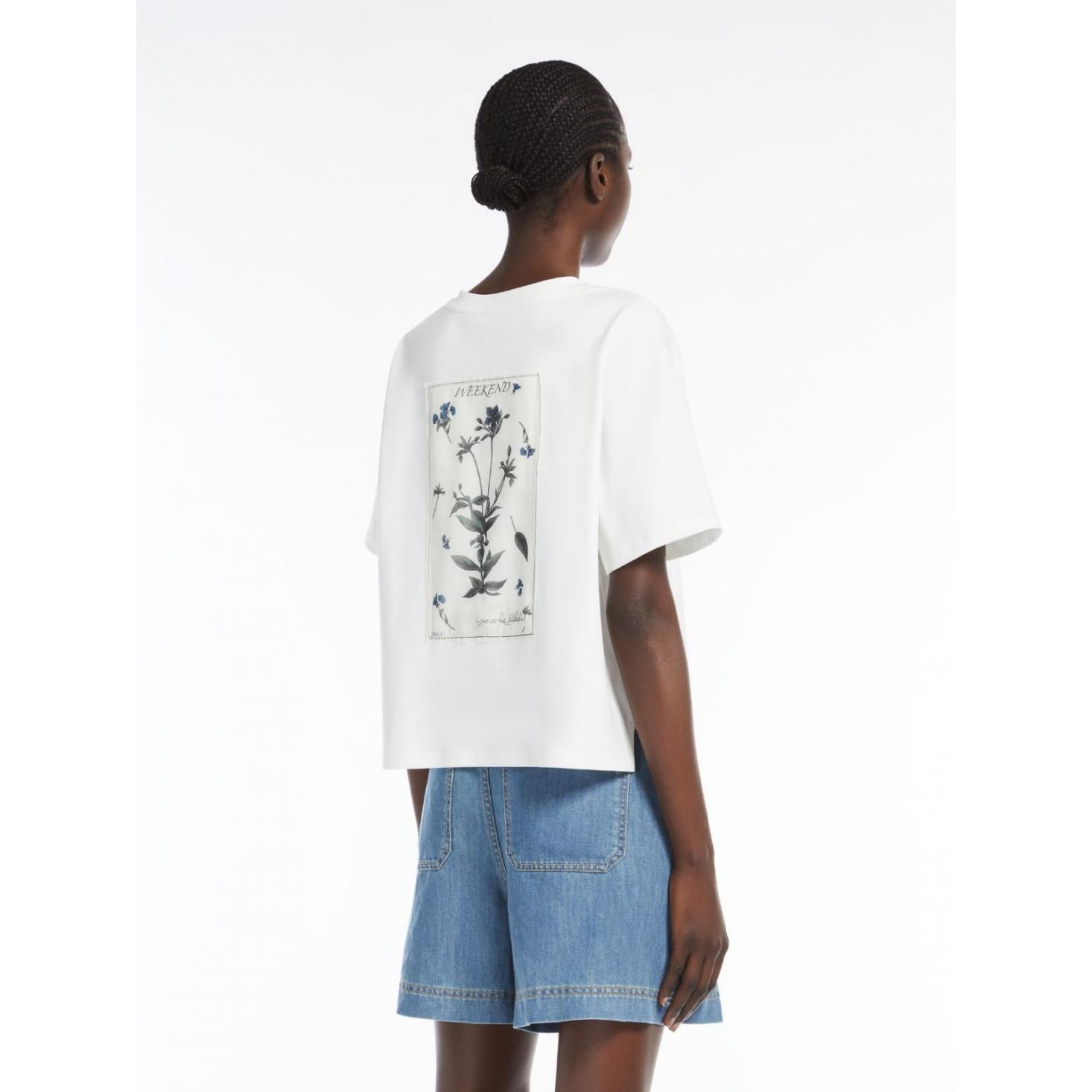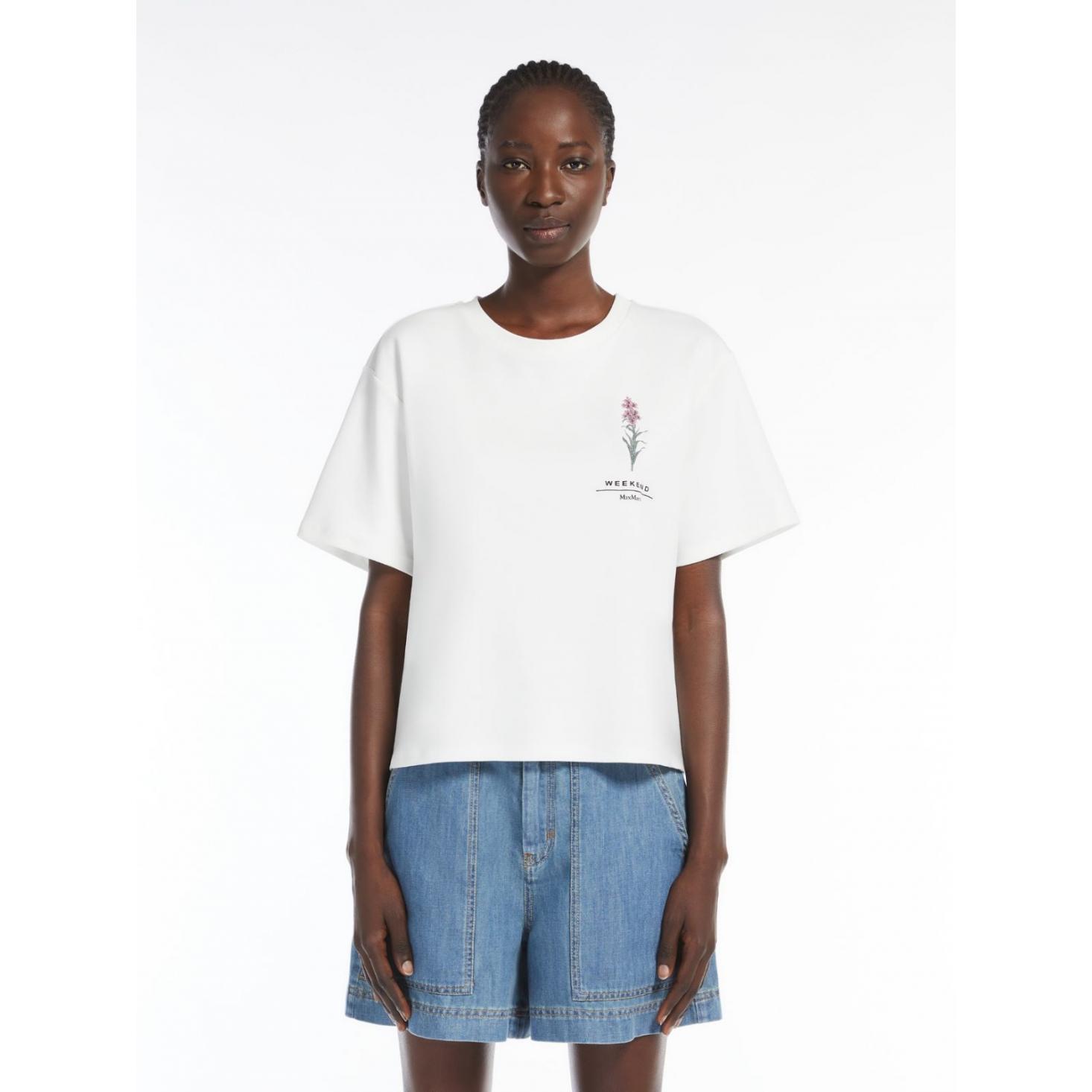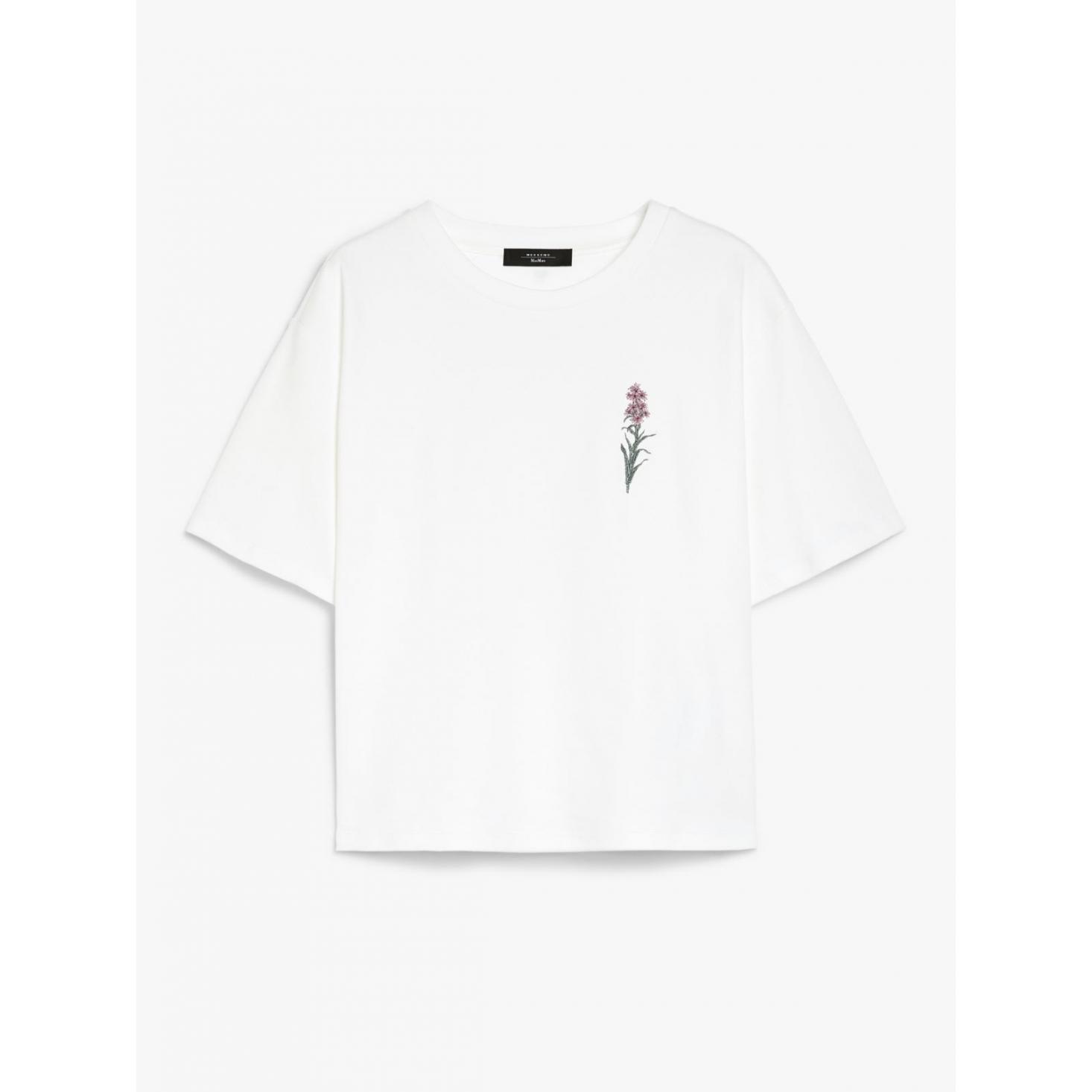 T-shirt in jersey di puro cotone organico con scollo a giro e maniche corte. Modello dalla linea boxy caratterizzato da motivi di grafiche e ricami sul davanti. Rifinita con piccoli spacchi laterali sui fianchi. Il tessuto principale di questo capo contiene almeno il 50% di fibra di cotone coltivata secondo i principi dell'agricoltura biologica.