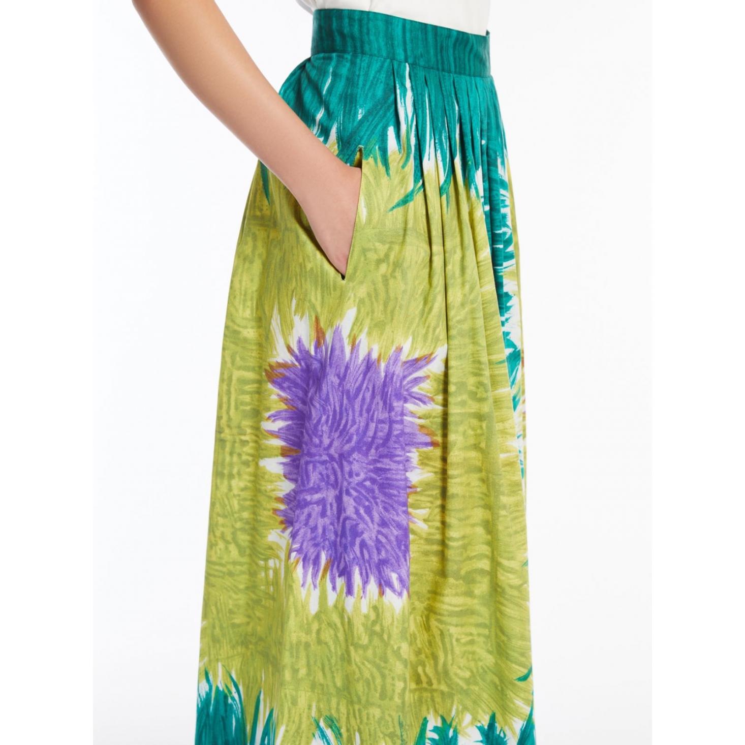 Gonna midi dalla linea ampia, in popeline di puro cotone, con stampa piazzata e tasche inserite nei fianchi. Il motivo di pieghe in vita dona movimento al capo. Chiusura con zip sul retro. Il capo fa parte della nuova capsule "A Weekend with Ashley Park". Ispirata a un'estate mediterranea e all'eleganza parigina, la collezione offre capi versatili e senza tempo, pensati per accompagnarti con stile e disinvoltura in ogni momento della giornata. Una celebrazione del glamour contemporaneo.