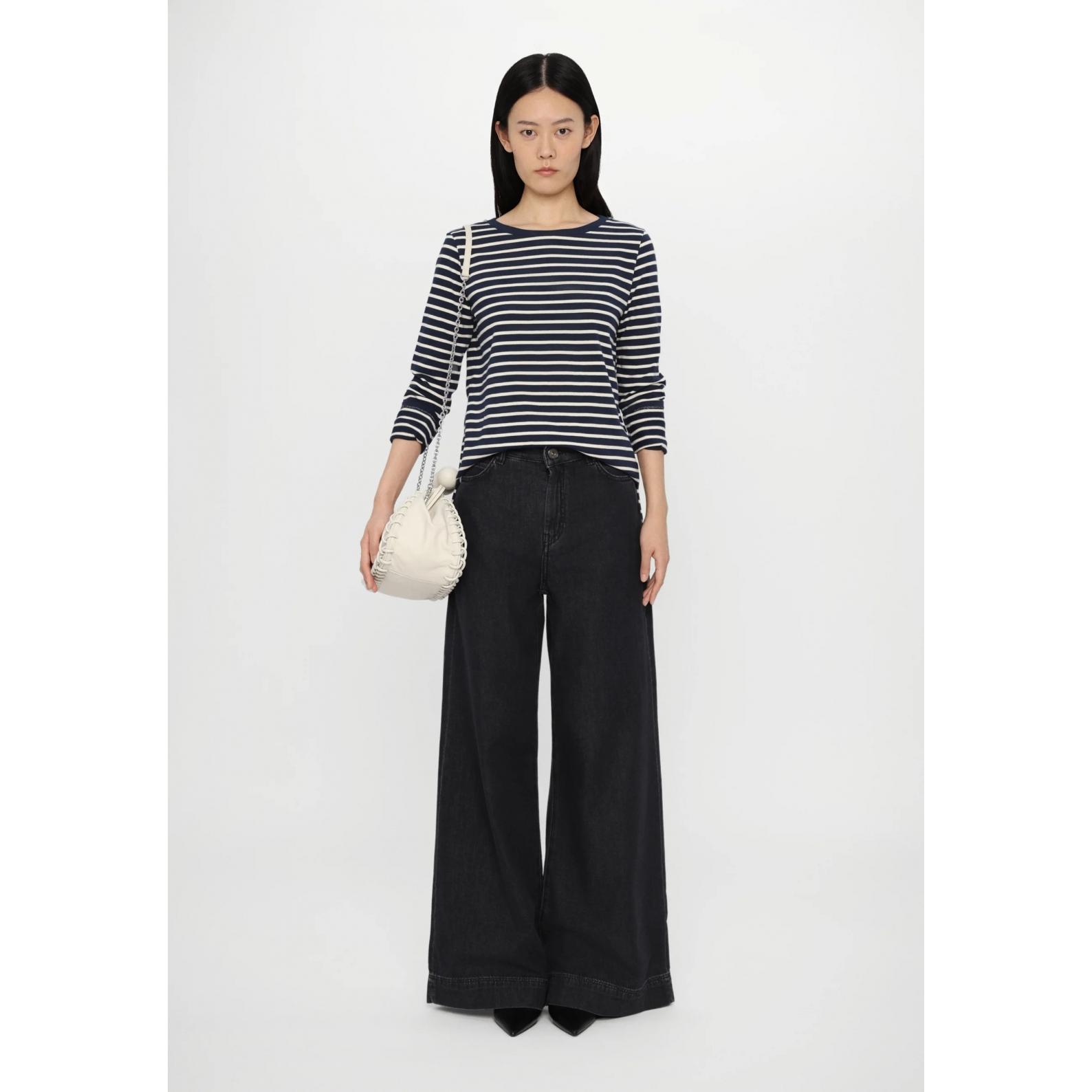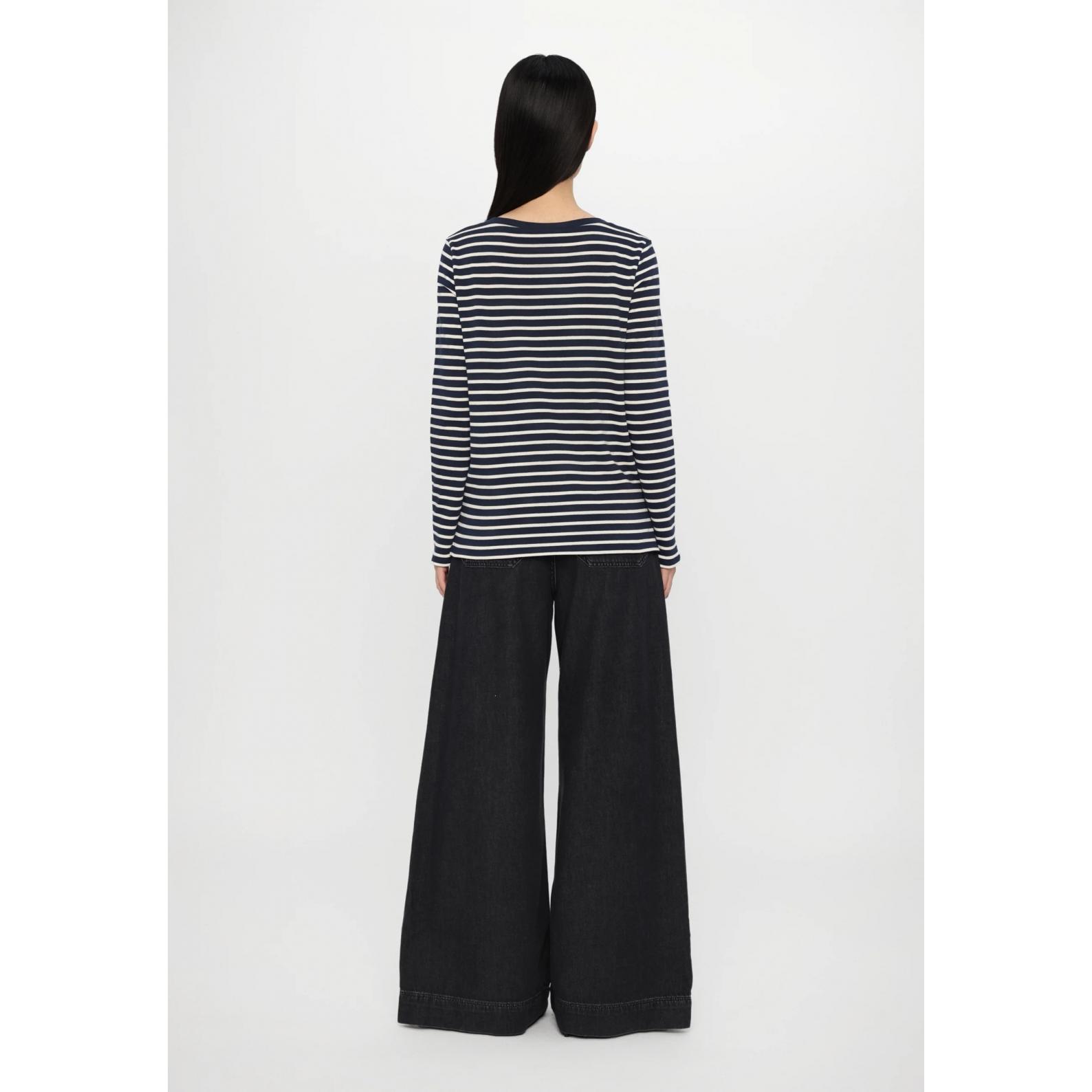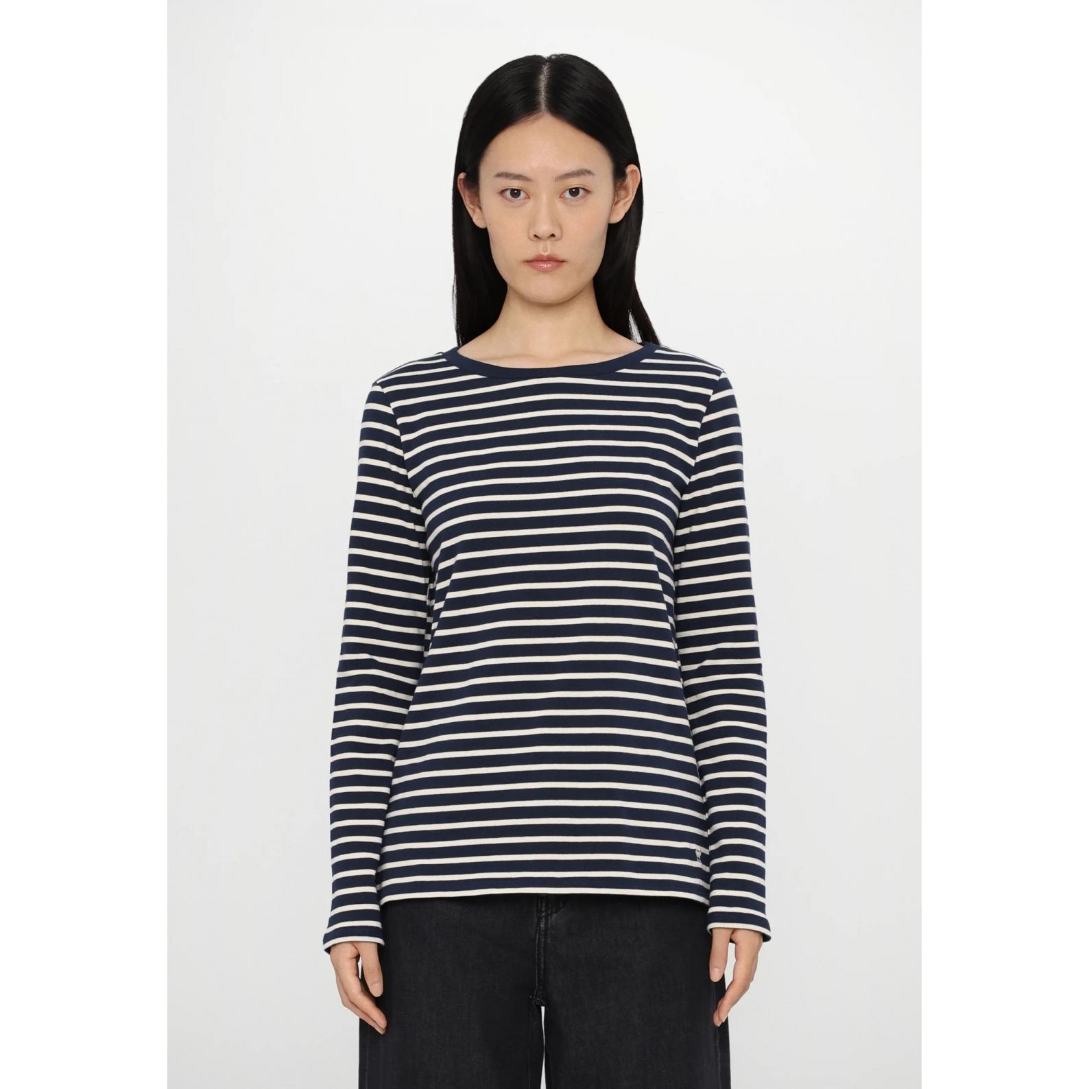 T-shirt a maniche lunghe, realizzata in morbido jersey di cotone organico a righe. Modello dalla linea dritta, caratterizzato da scollo a barchetta, maniche lunghe e spacchi ai fianchi. Il tessuto principale di questo capo contiene almeno il 50% di fibra di cotone coltivata secondo i principi dell'agricoltura biologica.