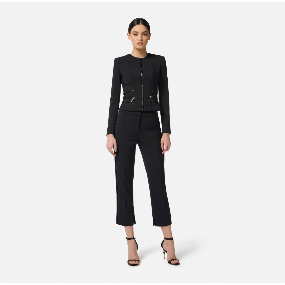 Giacca in doppio crêpe dalla vestibilità slim. Con girocollo e maniche lunghe, è definita da tagli ispirati al mondo della corsetteria che donano una silhouette geometrica. Gli elementi decorativi come le zip e i filetti in tono accentuano il punto vita.