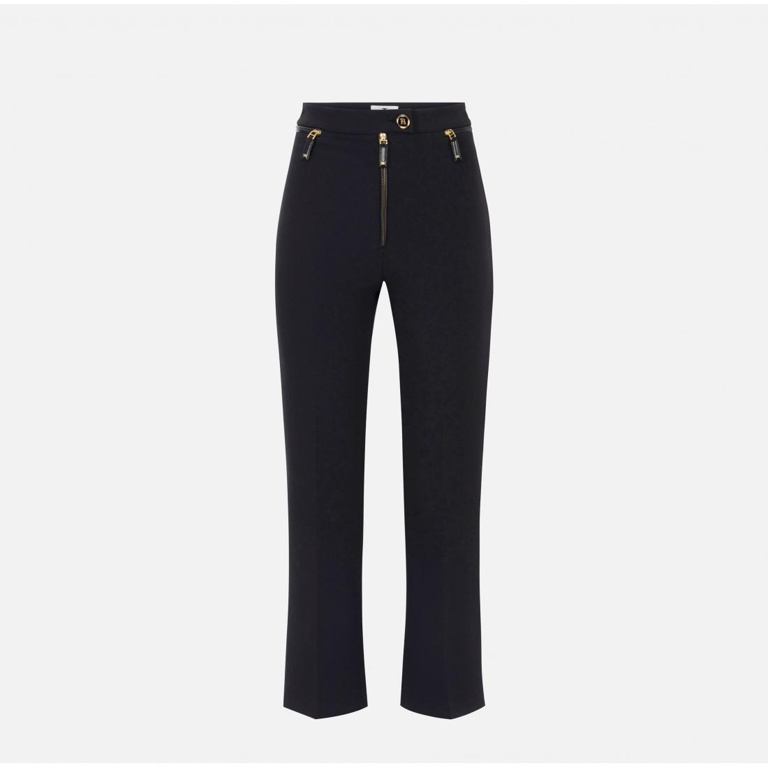 Pantaloni in doppio crêpe dalla vestibilità aderente. Si distinguono per i dettagli con zip sul davanti, incorniciate da filetti in tono. Il bottone smaltato con logo regala un tocco luminoso. Parte della collezione Essential, per costruire il guardaroba perfetto.