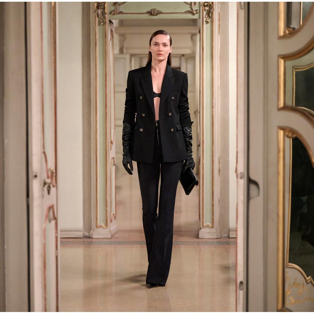 Fodera in raso monogram, Zip con tirazip, Lunghezza 117 cm per la taglia 40 IT, La modella è alta 177 cm e indossa una taglia 40 IT, Vestibilità Slim,