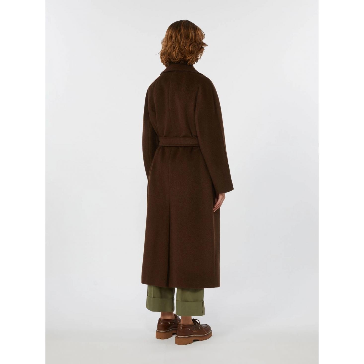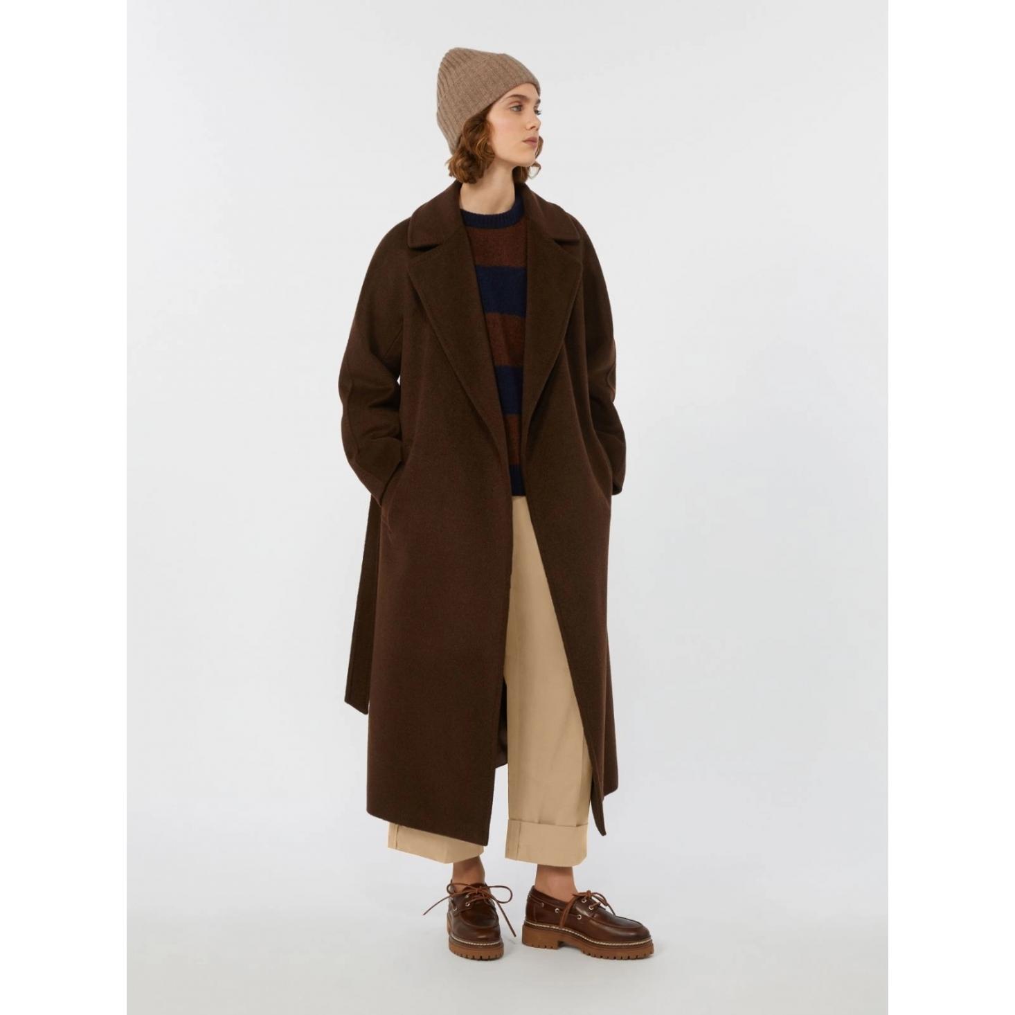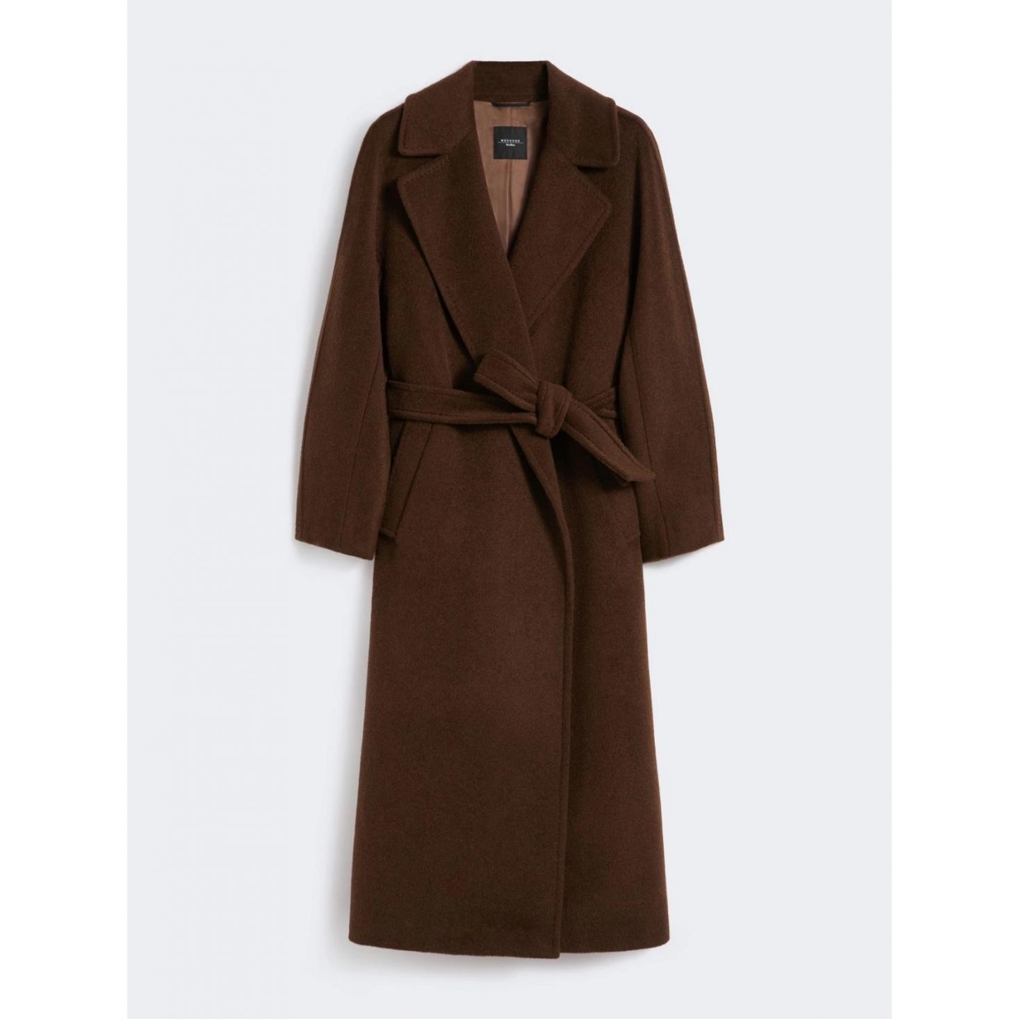 Cappotto lungo dalla silhouette a vestaglia con cintura abbinata in vita.