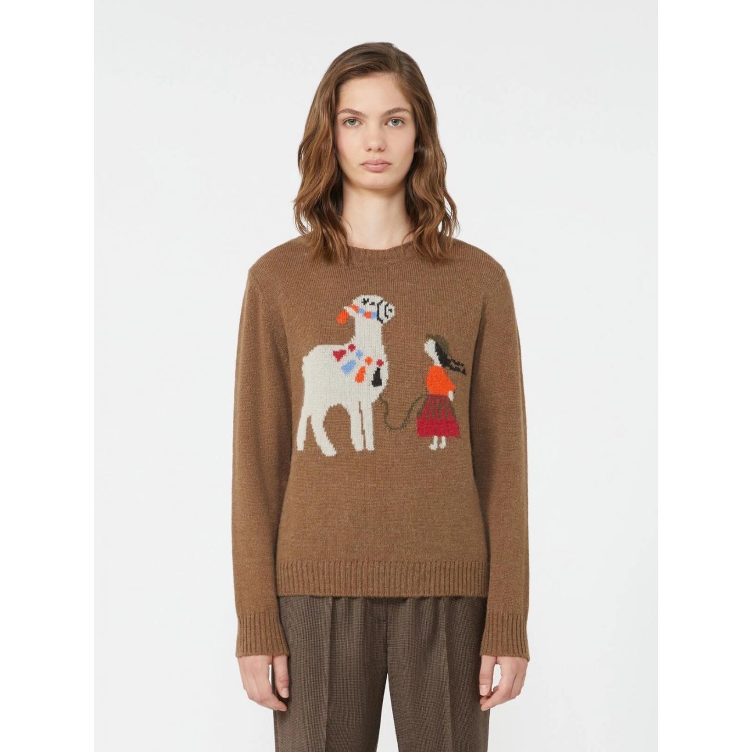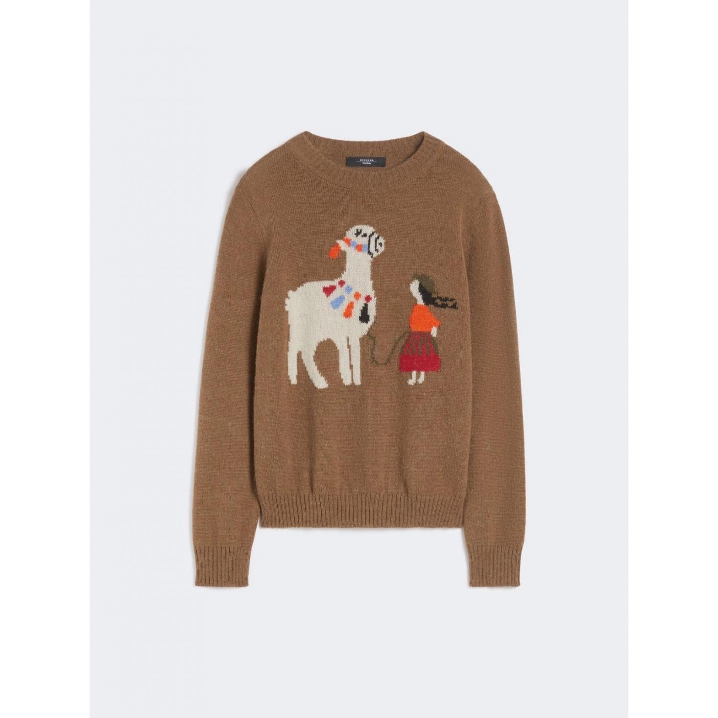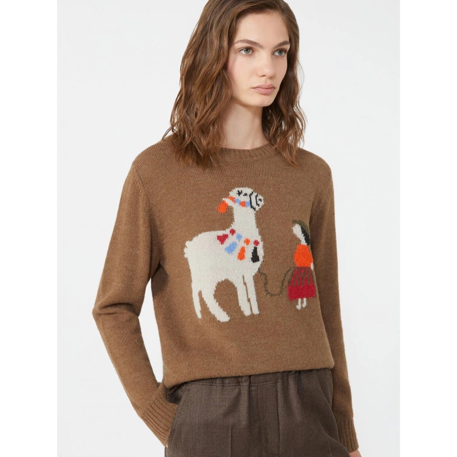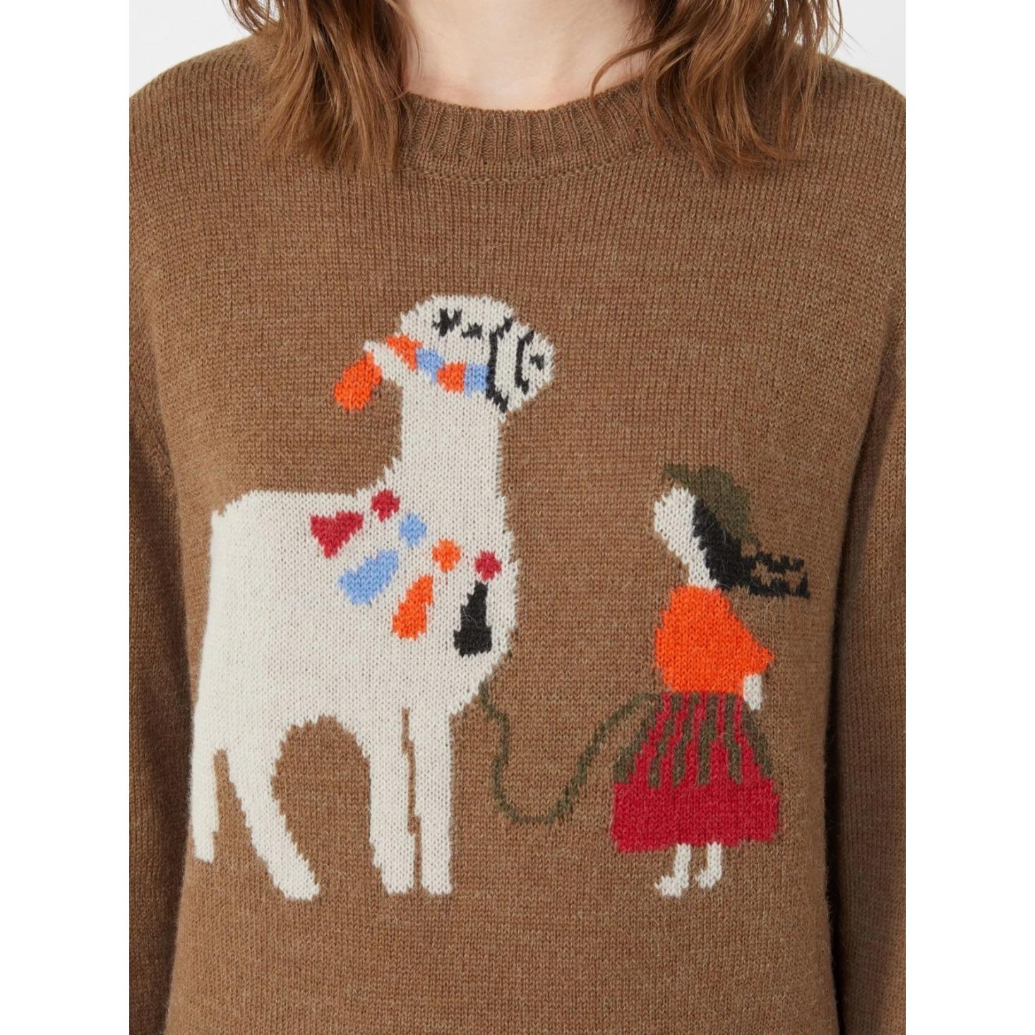 Maglia girocollo, personalizzata con motivo di collezione intarsiato al centro sul davanti.