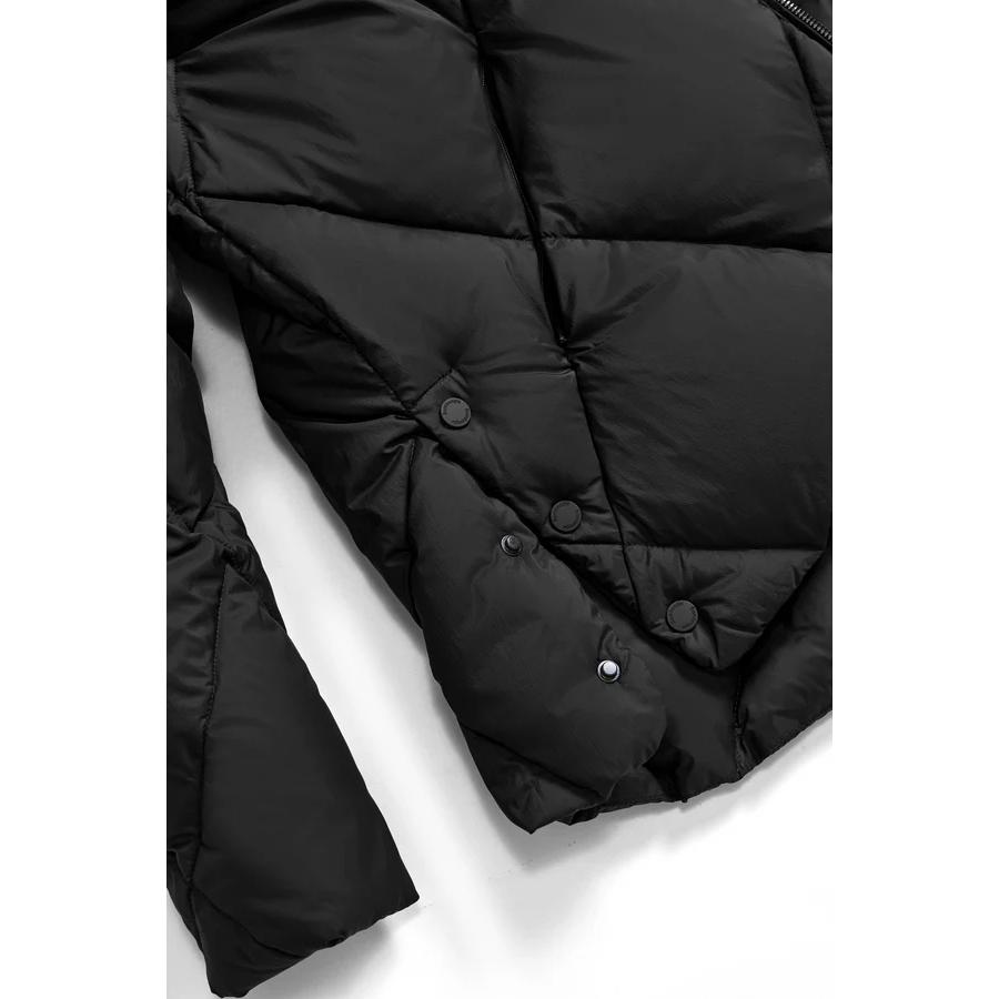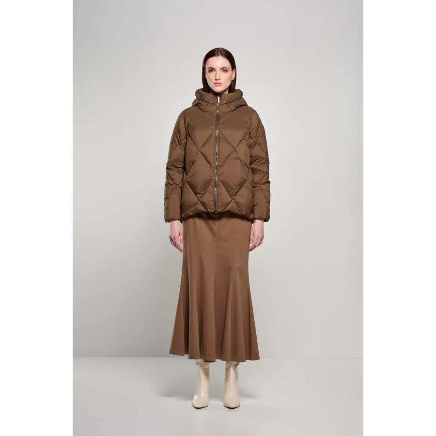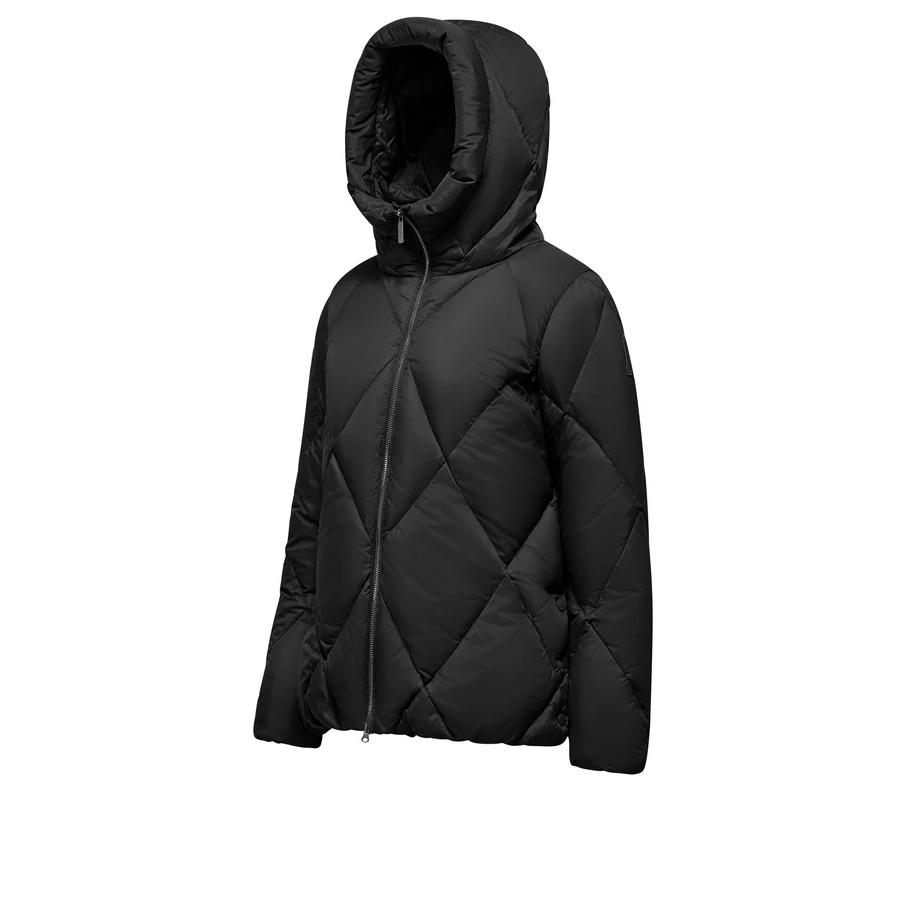 Design e Comfort Invernale Questo piumino da donna unisce eleganza e funzionalità grazie alla trapuntatura a rombi, che valorizza la linea con un taglio regular fit. Il cappuccio fisso offre una protezione affidabile nelle giornate più fredde, mentre la zip a doppio cursore permette una regolazione pratica e una vestibilità su misura. La fodera interna in nylon contribuisce a mantenere il capo leggero e comodo per l’uso quotidiano.