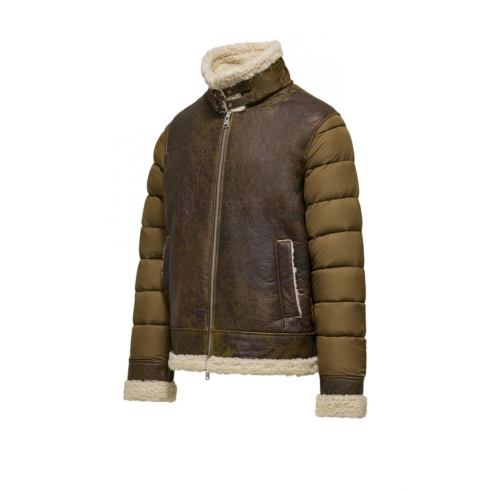 Realizzato in pelle di pecora autentica e nylon trapuntato per un effetto materico elegante, Collo a rever foderato in sherpa fleece che aggiunge calore e comfort nelle giornate fredde, Chiusura frontale con zip metallica a doppio cursore per una vestibilità pratica e versatile, Imbottitura in poliestere e fodera in sherpa fleece che assicurano comfort termico costante, Ampie tasche esterne pensate per la funzionalità quotidiana e un aspetto curato,Vestibilità : regular