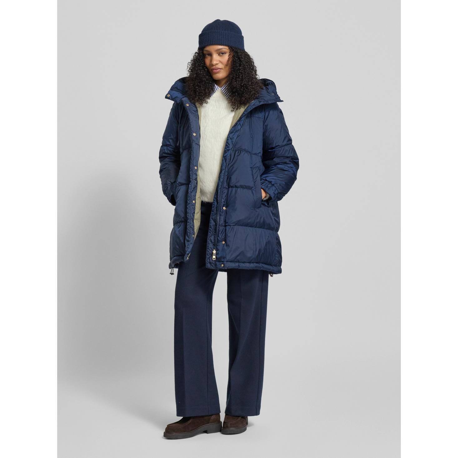 Parka midi reversibile con collo alto e cappuccio a coulisse, maniche raglan con polsino elastico e coulisse regolabile al fondo.<P< Parka in tela antigoccia con trapuntatura a righe orizzontali, Interno trapuntato con motivo a "cipolla", Linea morbida, Chiusura con zip coperta e bottoni a pressione, Tasche a filettone su entrambi i lati, Lettering Weekend Max Mara stampato nello sprone interno, Imbottiti in piuma d'oca.