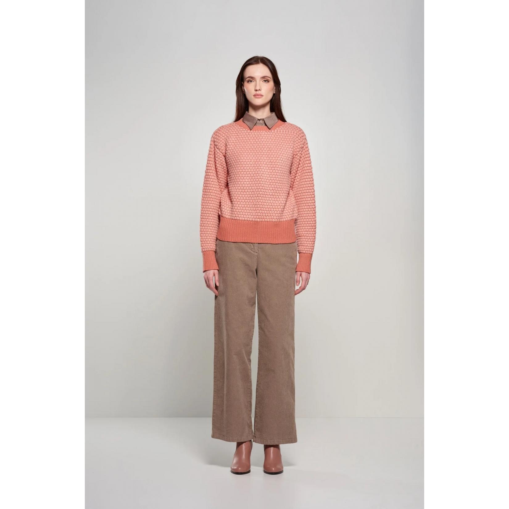 Maglione Jacquard a Girocollo Il maglione corto da donna con lavorazione jacquard bicolor unisce stile e praticità, ideale per chi cerca un capo distintivo e confortevole. Il motivo jacquard crea un contrasto elegante, valorizzando ogni outfit con un tocco grafico. La linea regolare offre una vestibilità equilibrata, che segue la silhouette senza stringere. Il girocollo classico aggiunge un dettaglio senza tempo, adatto a molteplici occasioni e facilmente abbinabile a diversi accessori.