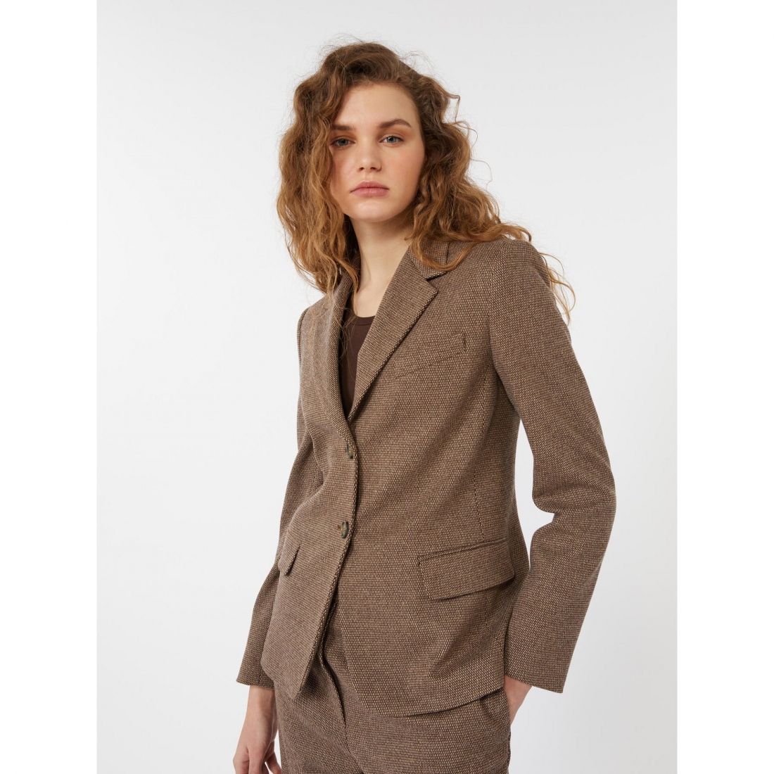 Blazer monopetto d'ispirazione maschile. Blazer in jersey di mista lana e cotone, Linea leggermente sfiancata, Collo a rever, Maniche lunghe a giro, Chiusura frontale con due bottoni a vista, Taschino sul petto e tasche con patta applicata sul davanti Foderato,