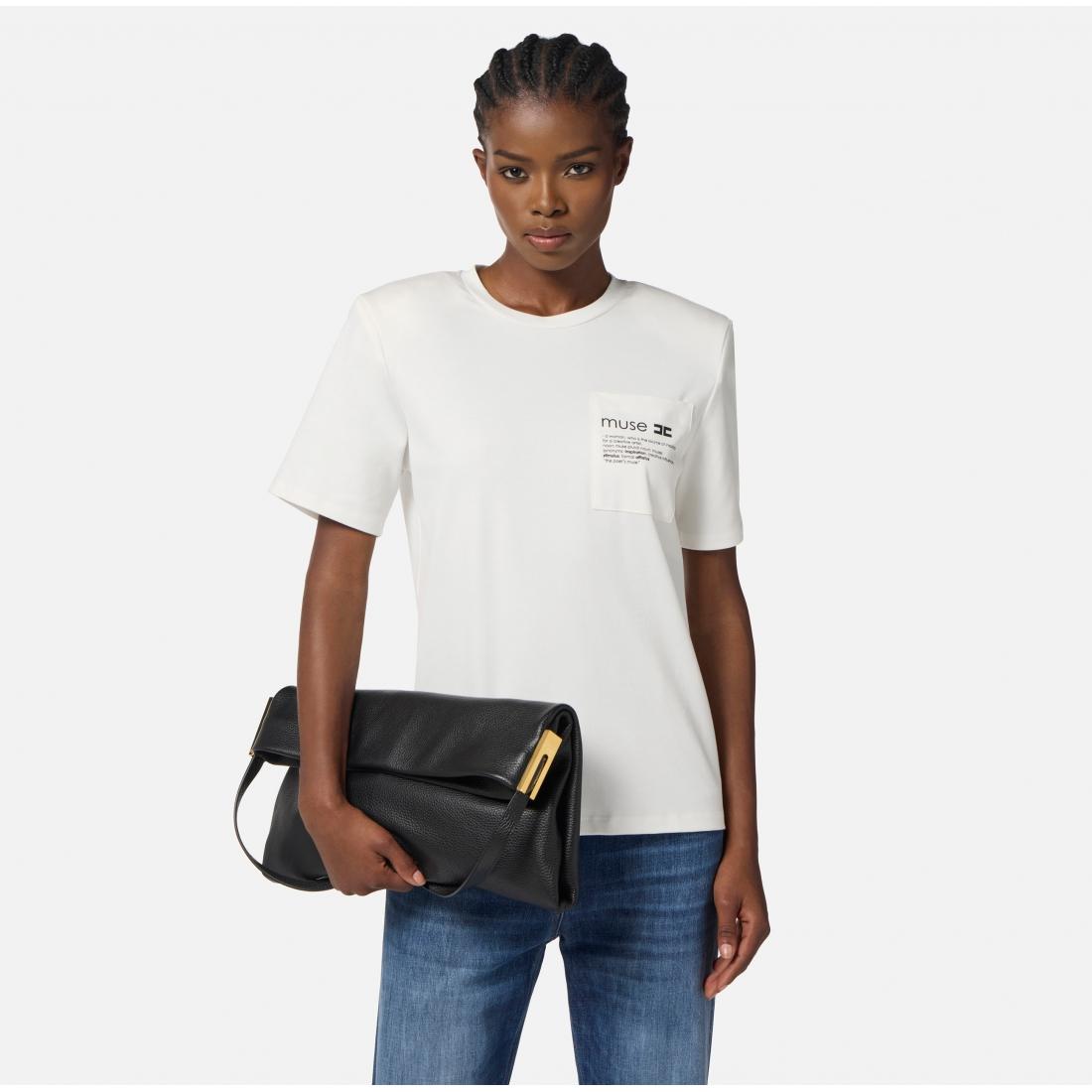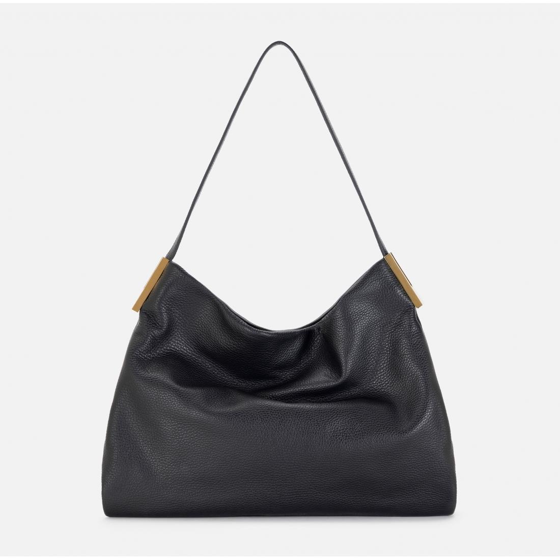 Borsa tote realizzata in pelle. Dalla shape essenziale ed elegante, è impreziosita dai dettagli laterali in metallo dorato. Logo al fondo.
