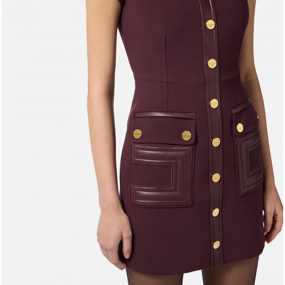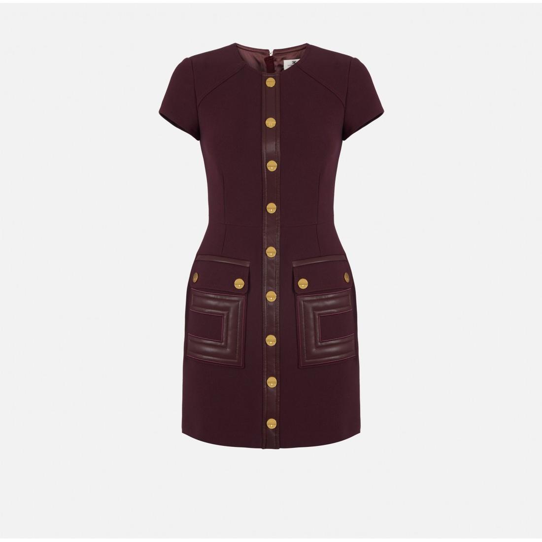 Abito in doppio crêpe dalla vestibilità slim. Il vestito ha maniche ad aletta e si distingue per i dettagli in tono che donano definizione come il cannoncino e le patch, con logo embossed e ricamate sulle tasche. I bottoni in metallo dorato decorano il davanti con note di luce.