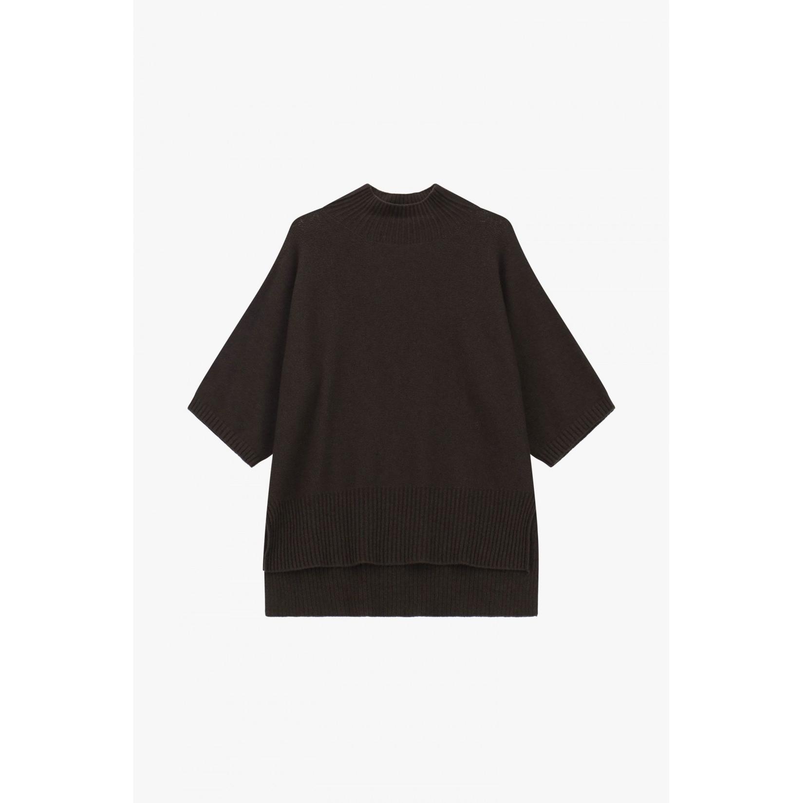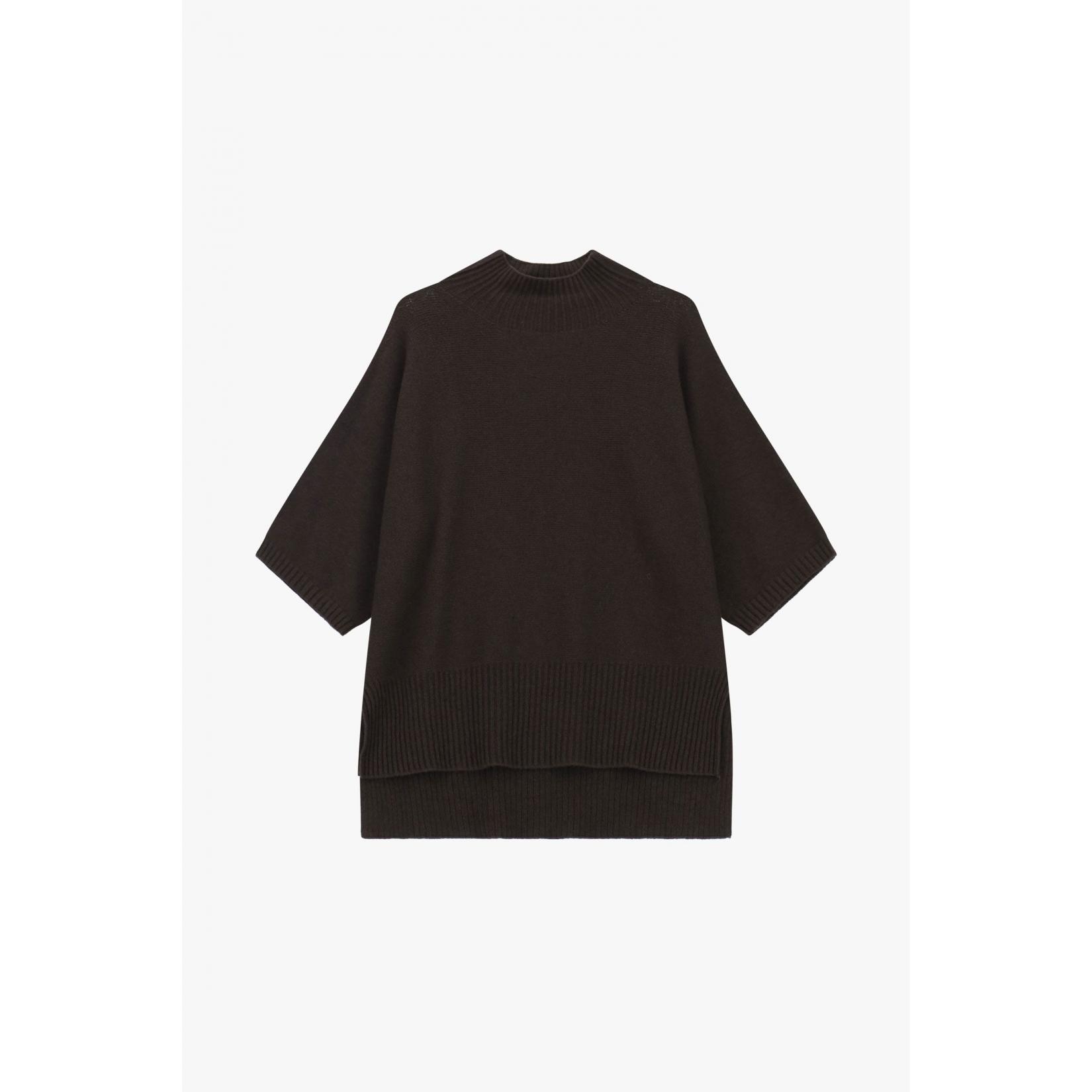 Linee ampie e struttura rilassata definiscono questo maglione a maniche corte, arricchito da un collo alto e ampi bordi a costine. Ideale per comporre look dinamici e distintivi, permette molteplici combinazioni con capi sartoriali e contemporanei, valorizzando la ricercatezza di ogni stile personale.