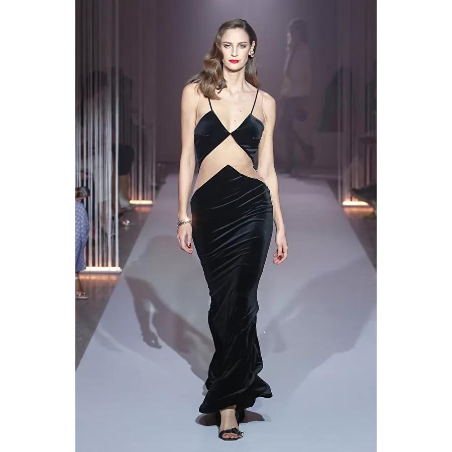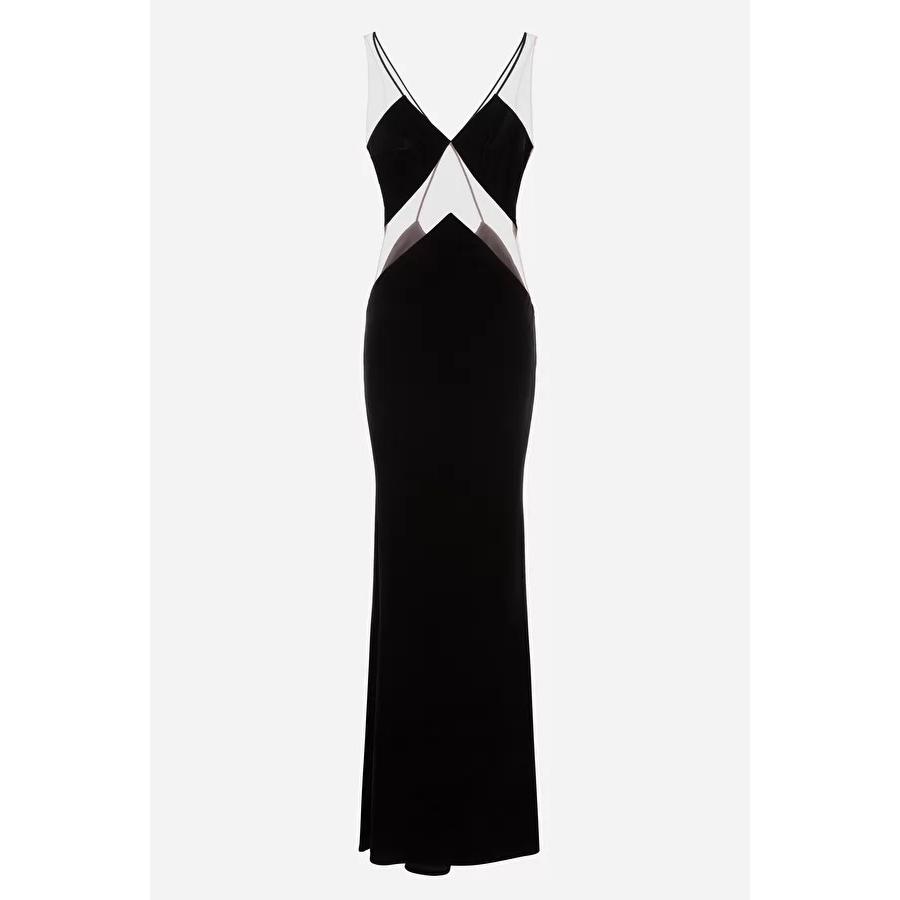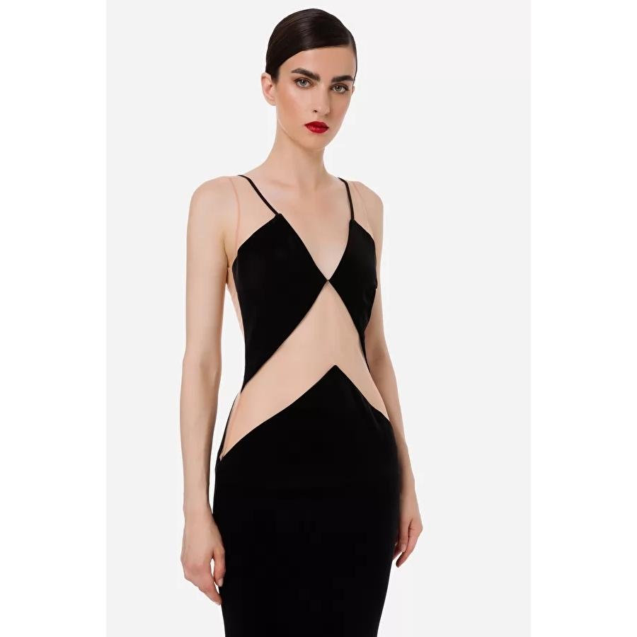 Abito red carpet in velluto fluido dalla linea a sirena, con inserti di tulle color nudo che crea un perfetto gioco di illusione, dando l’idea di aver due pezzi staccati. Le bretelline sottili e i tagli netti, slanciano la silhouette. • Abito Red Carpet in velluto fluido • Linea a sirena • Inserti in tulle color nude • Gioco di illusione • Bretelline sottili Composizione articolo 90%Poliestere 10%Elastane Colore Nero