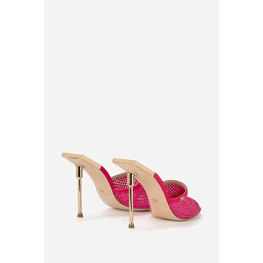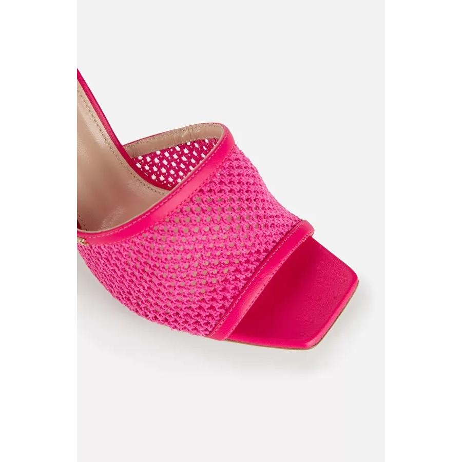 Mules in rete tecnica con placche logo posizionate sul retro del tallone. Tacco scultura H100 mm in metallo colore oro. • Mules• Rete tecnica• Tacco h100 mm• Maxi placche• Doppie c Composizione articolo 50%Cotone 50%Poliestere