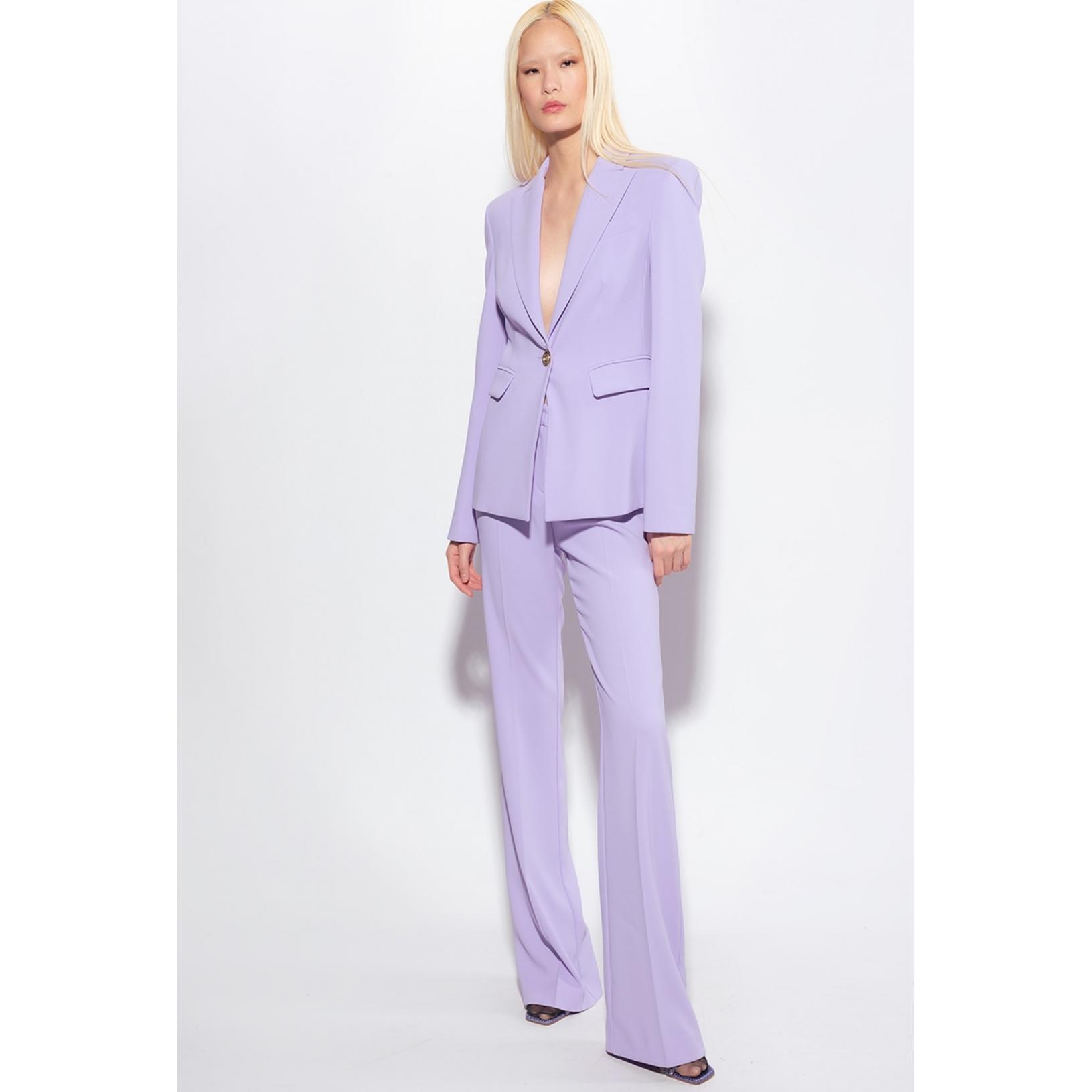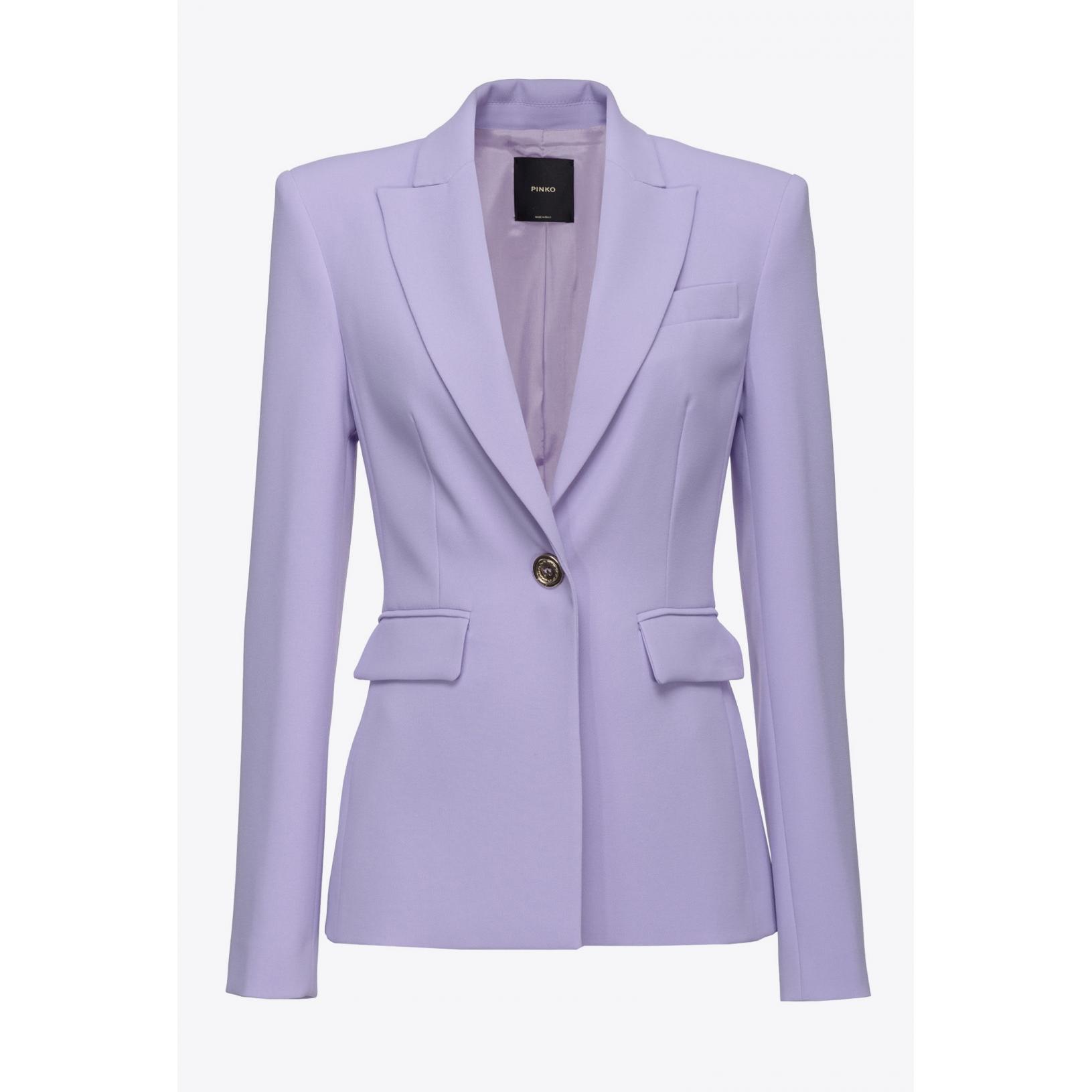 Blazer femminile in tessuto crêpe stretch. Linea avvitata, più stretta sui fianchi, con collo a rever, maniche lunghe con bottoni al fondo, tasche con patta applicata. Foderato. Chiusura monopetto con bottone singolo. - Tessuto Esterno: POLIESTERE 98% ELASTAN 2% - Fodera: ACETATO 67% POLIESTERE 33%