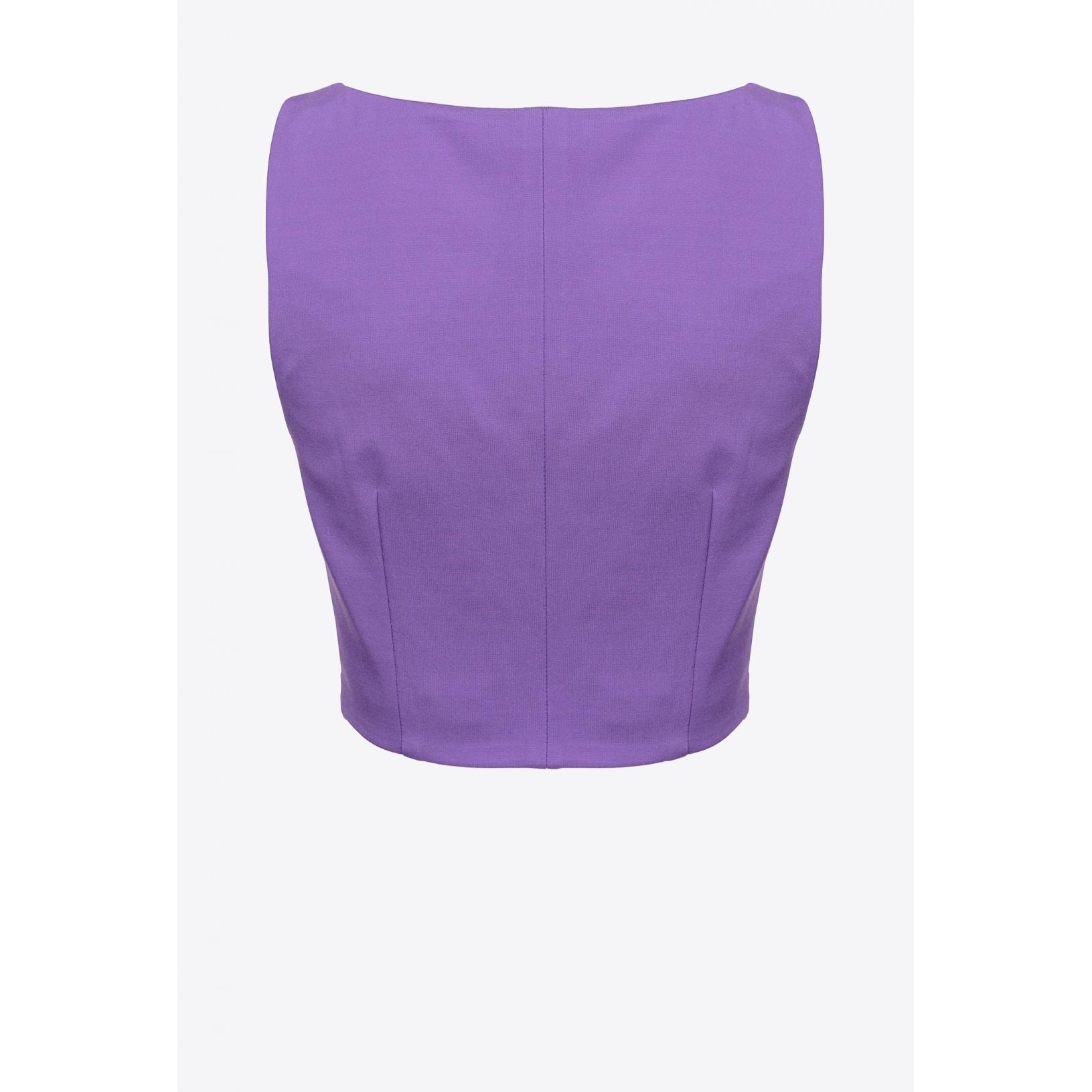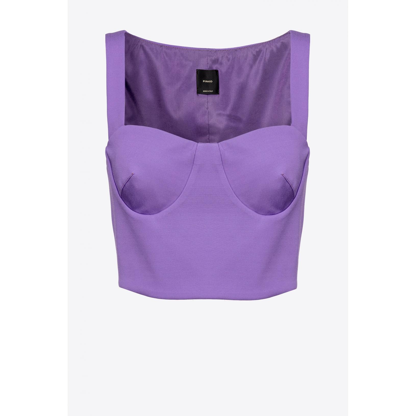 Top corto senza maniche in tessuto tecnico di viscosa stretch lavorato a punto stoffa effetto scuba. Linea aderente con scollo a cuore e coppe preformate. Tessuto Esterno: VISCOSA 65% POLIAMMIDE 30% ELASTAN 5% - Fodera: POLIAMMIDE 67% POLIESTERE 33%