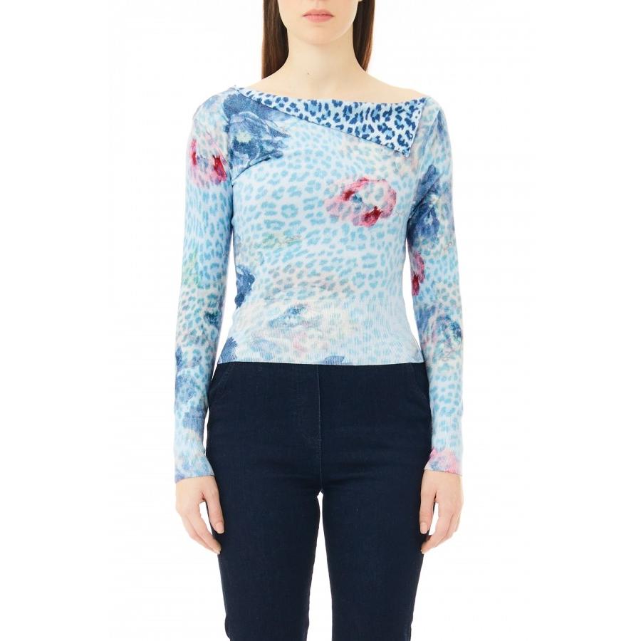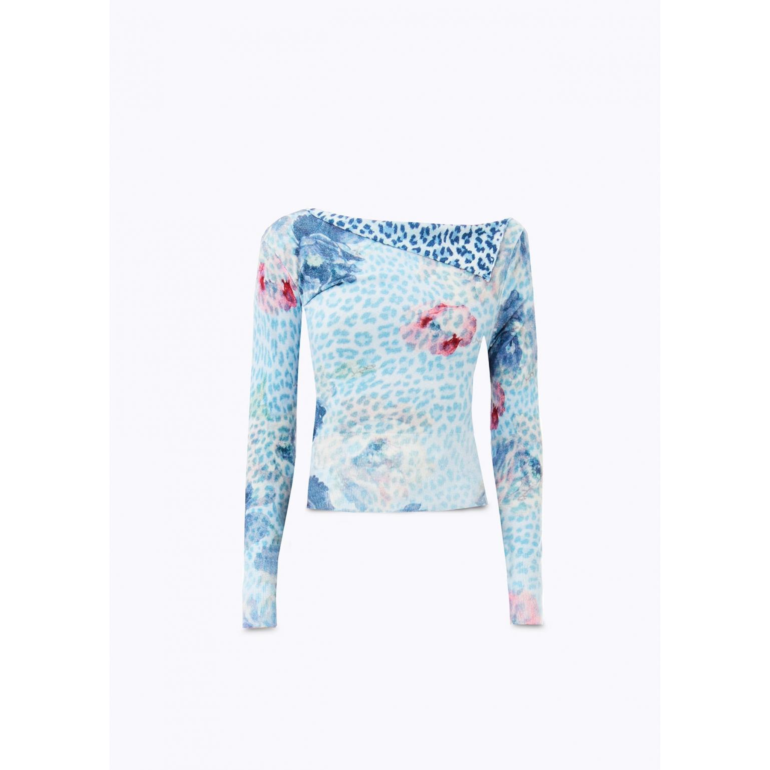 È REALIZZATA A STAMPA FLOREALE DA UN LATO, E A FANTASIA MACULATA DALL'ALTRO LA MAGLIA IN FILATO DI VISCOSA. COLLO ASIMMETRICO CON LEMBO IN APPOGGIO, MANICHE LUNGHE E PROFILI RIFINITI A COSTINE. POETICA E DI CARATTERE, DA ABBINARE CON FACILITÀ. COMPOSIZIONE: 55% VISCOSA, 45% POLIAMMIDE.
