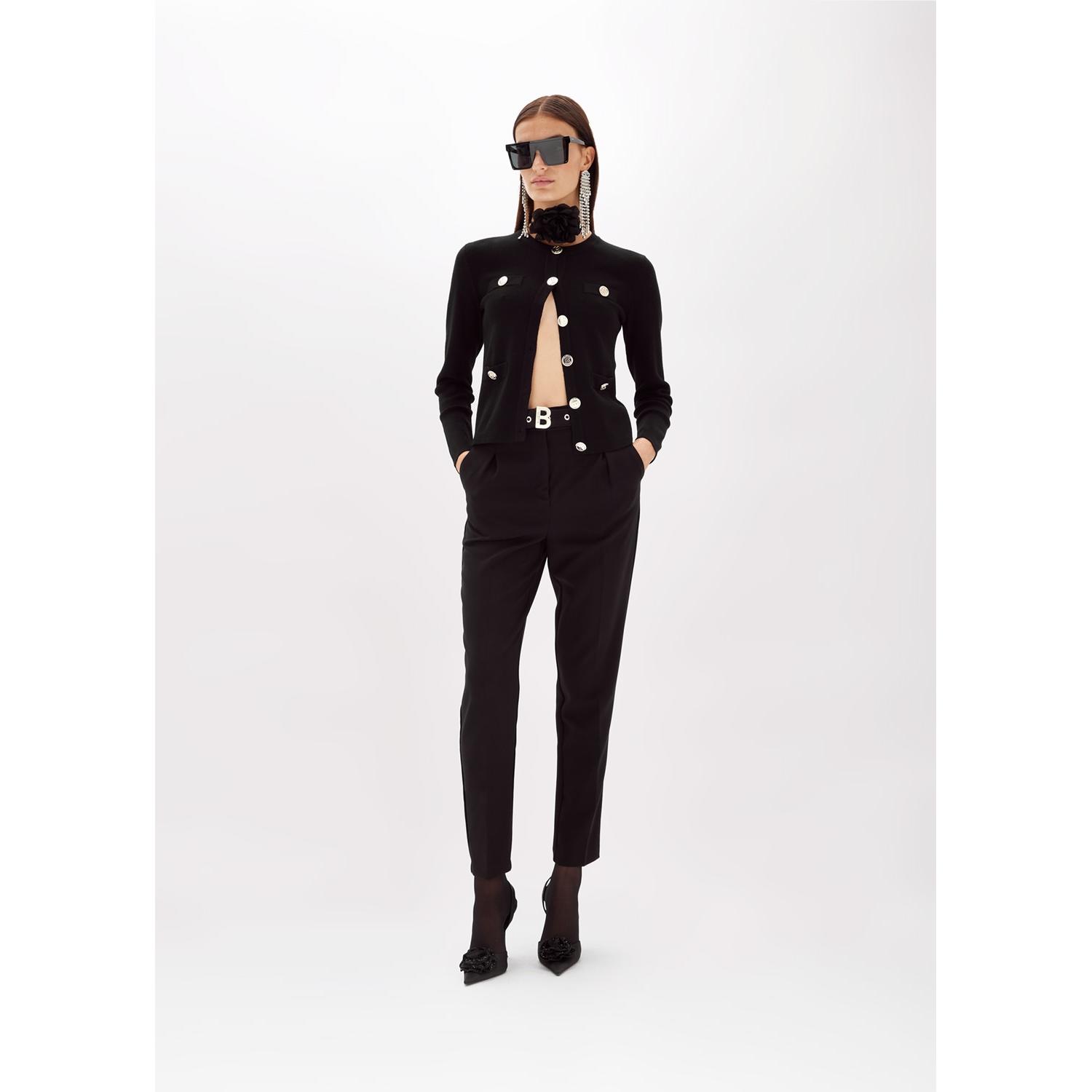 PANTALONI A SIGARETTA IN CADY MANO CALDA CON CINTURA ABBINATA CON FIBBIA LOGO. PASSANTI IN VITA, PINCES AL BACINO, CHIUSURA CON ZIP E BOTTONE, TASCHE A FILETTO SUL RETRO, PIEGA STIRATA. LI PUOI INTERPRETARE ON E OFF DUTY A SECONDA DELL'OCCASIONE. COMPOSIZIONE: 63% POLIESTERE, 32% VISCOSA, 5% ELASTAN