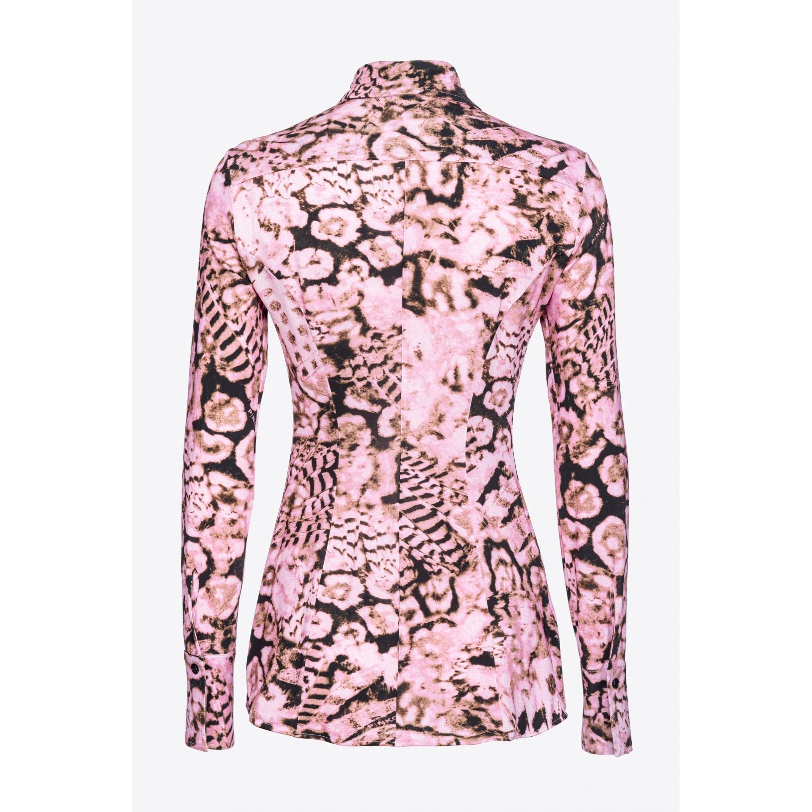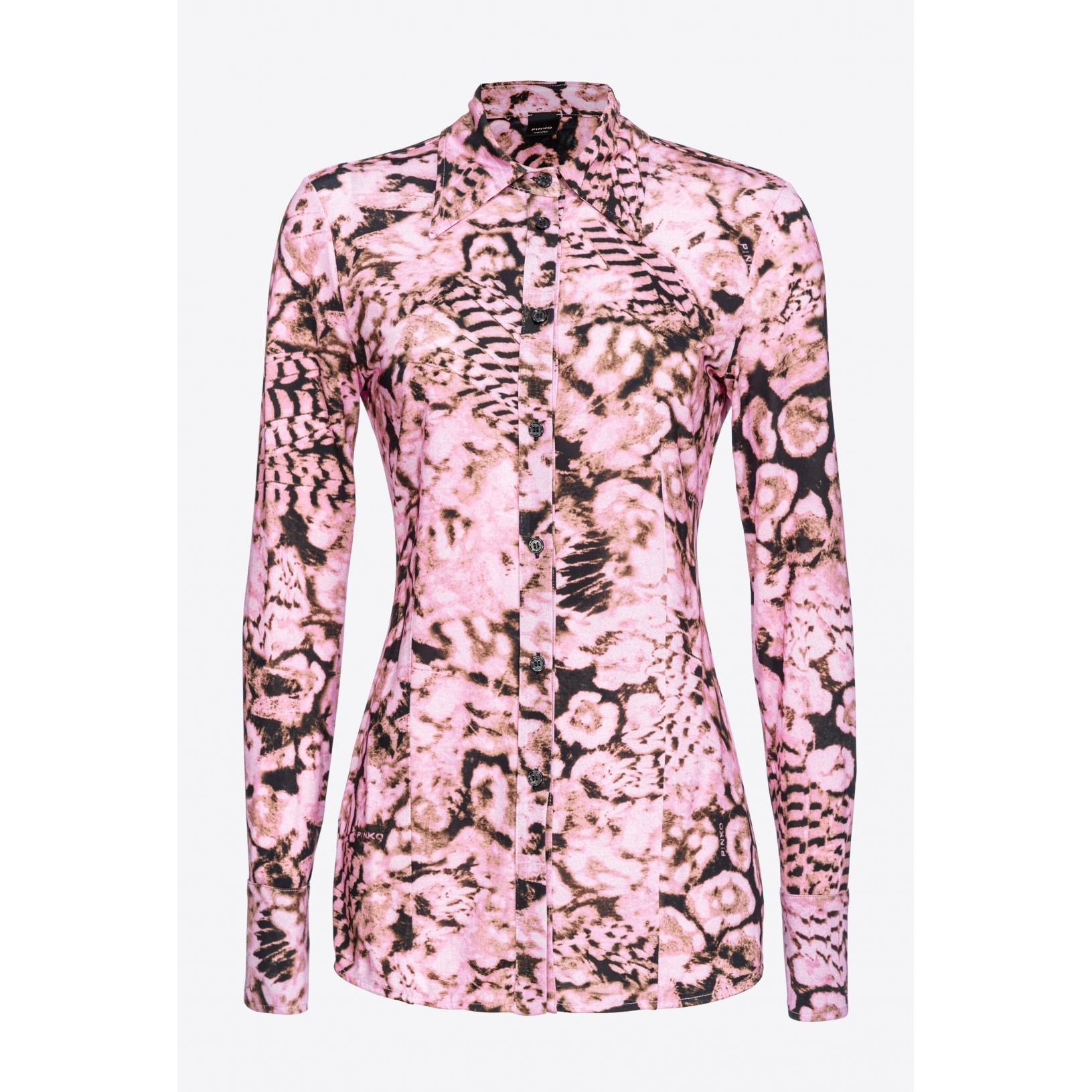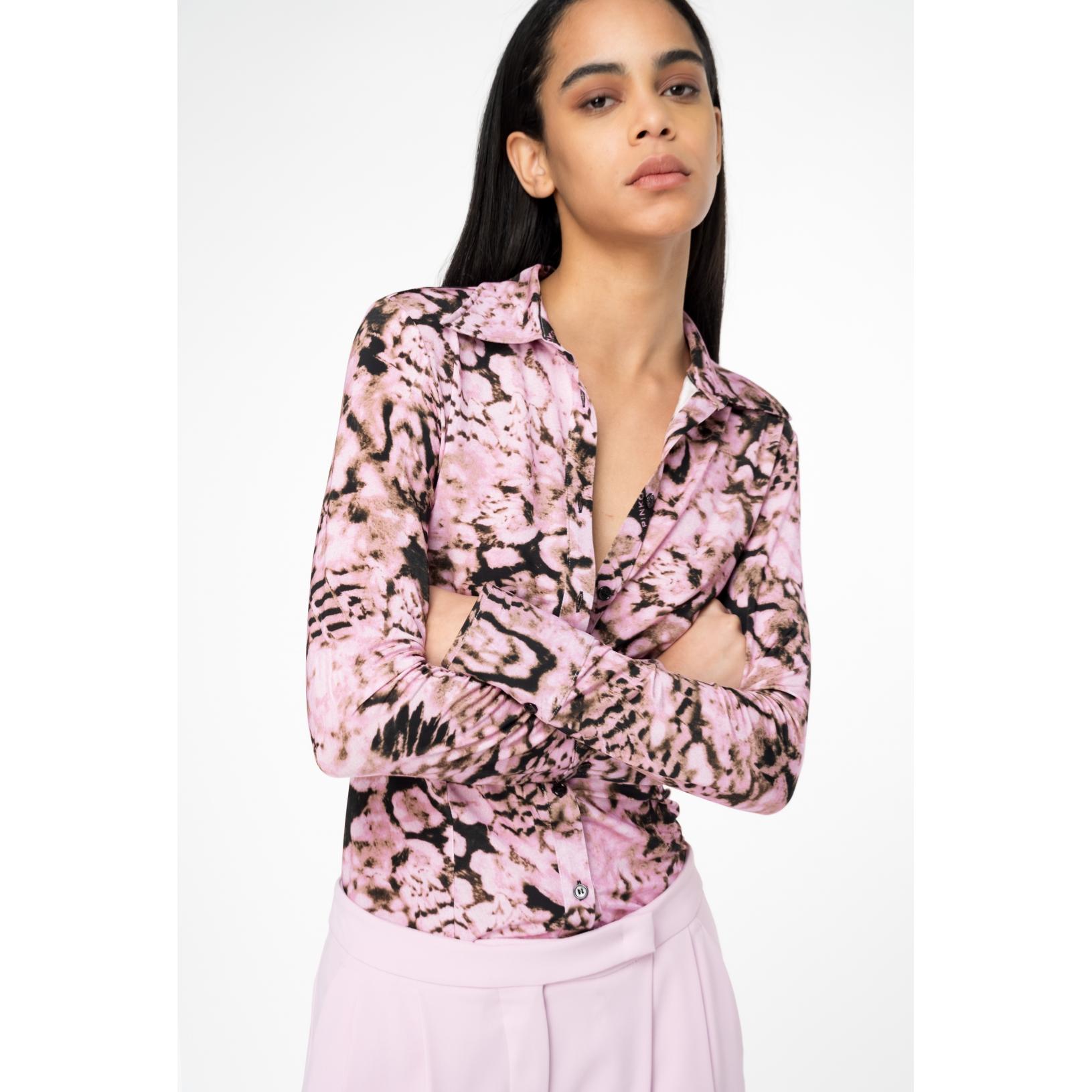 Camicia dalla linea aderente in jersey di viscosa stretch con stampa coral scanner. Colletto a punta, maniche lunghe con polsino al fondo, chiusura con bottoni davanti. Tessuto Esterno: VISCOSA 95% ELASTAN 5%