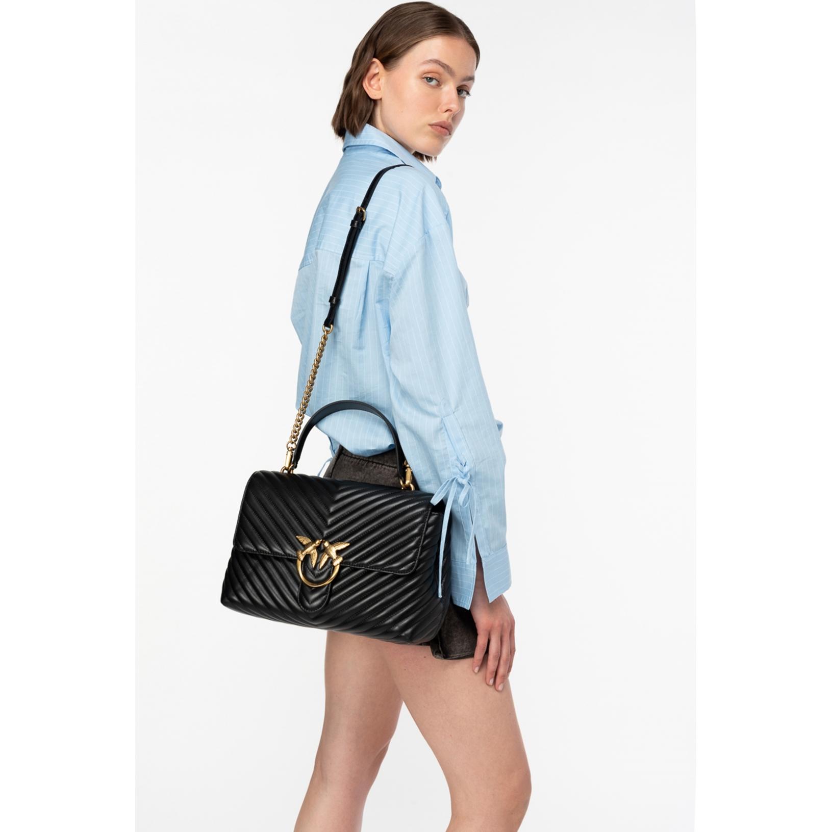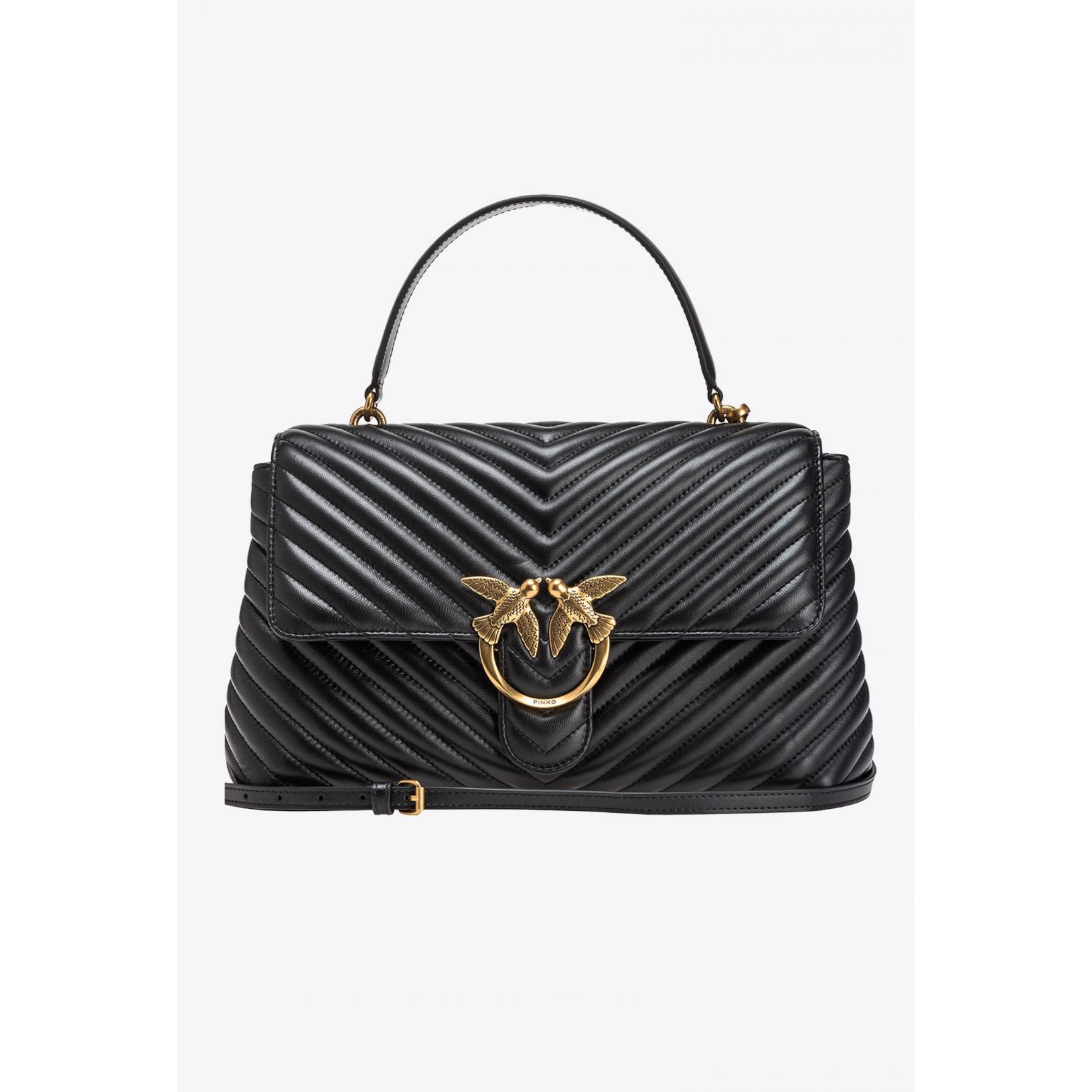 Big Love Bag Puff in nappa trapuntata con motivo chevron. La chiusura è completata dall'iconica fibbia in metallo Love Birds Diamond Cut. L'interno è foderato in microfibra scamosciata e comprende tramezza chiusa con zip e tasca a parete. La tracolla combina la classica catena metallica rotonda al pratico spallaccio regolabile in nappa. Fodera: NYLON 50% POLIURETANICA 50% - Pelle: PELLE DI PECORA 100% - Materiale: PELLE DI MUCCA 100% - Materiale 1: NYLON 60% POLIURETANICA 40%