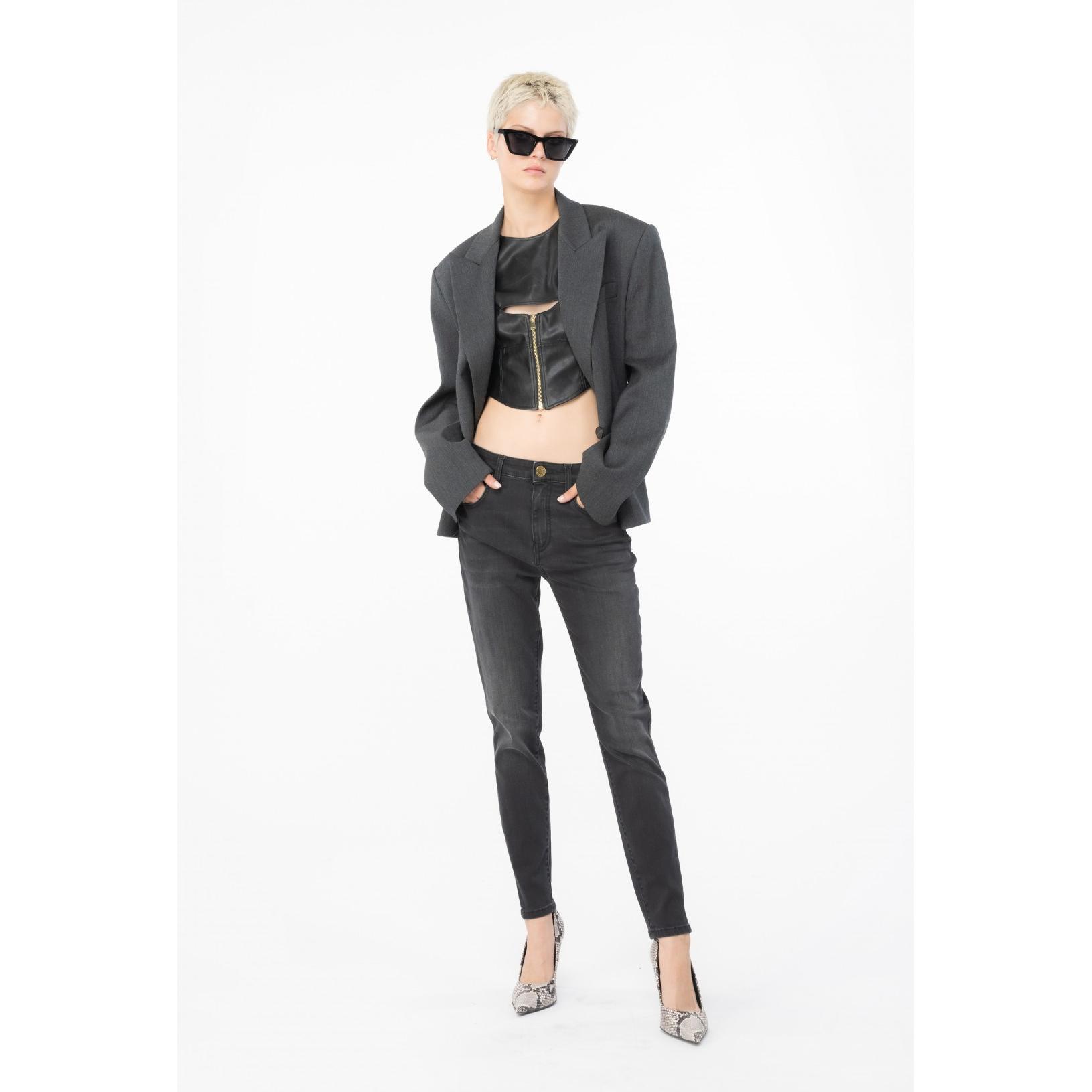 Jeans cinque tasche cropped skinny-fit in denim black stretch. Vita regular con passanti per cintura, lunghezza cropped e ricamo Love Birds su una delle due tasche sul retro. Chiusura con zip e bottone a chiodo in metallo. Tessuto Esterno: COTONE 83% POLIESTERE 15% ELASTAN 2% - Fodera: COTONE 100%
