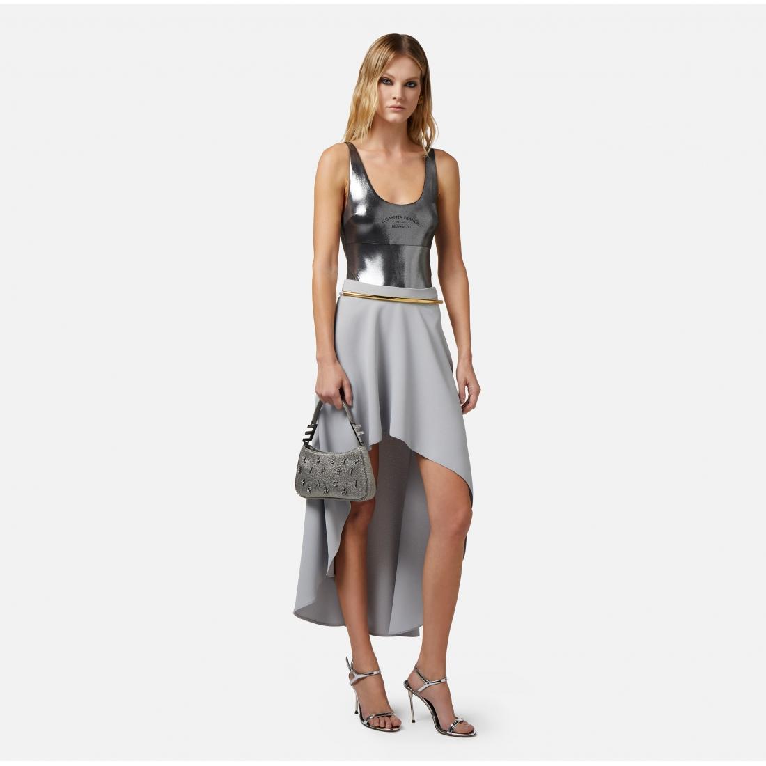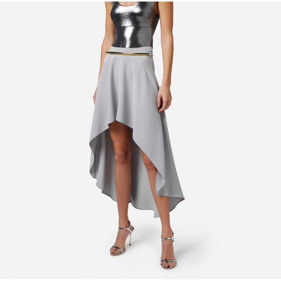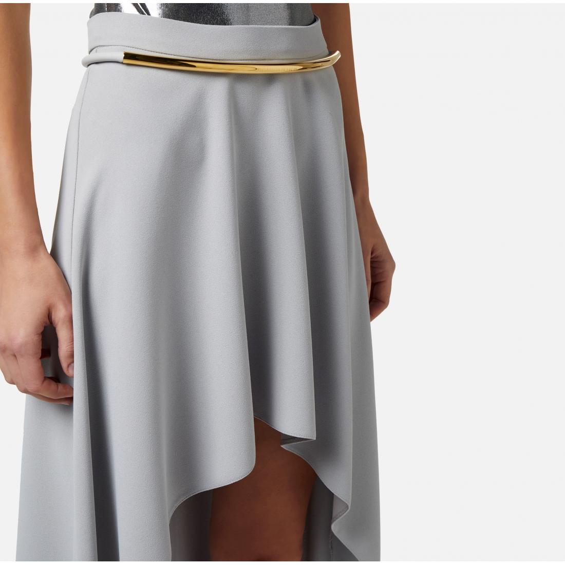 Gonna midi in crêpe leggero con fondo asimmetrico più corto sul davanti. Il punto vita è enfatizzato da cintura tubolare in metallo dorato. Zip invisibile dietro, Cintura removibile in metallo dorato, Lunghezza 140 cm per la taglia 40 IT, La modella è alta 177 cm e indossa una taglia 40 IT, Vestibilità Slim, Composizione articolo, 100% Poliestere.
