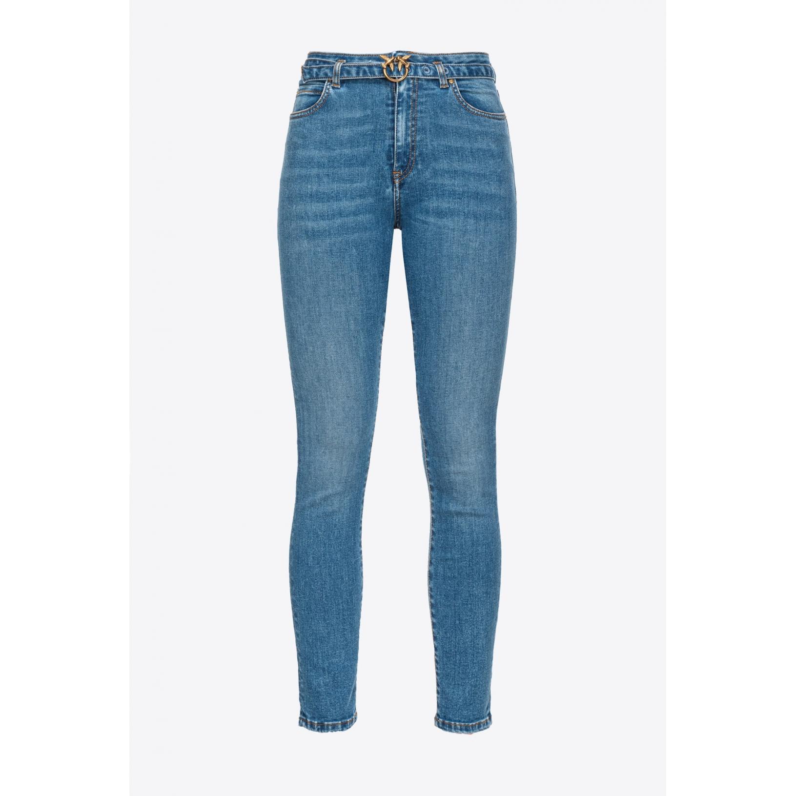 Jeans cinque tasche skinny-fit in denim stretch boom, lavaggio vintage medio. Vita alta con passanti per cintura e cintura sottile abbinata nello stesso tessuto con mini fibbia Love Birds Diamond Cut in metallo. Gamba dalla linea aderente e ricamo logo Love Birds su una delle tasche sul retro. Chiusura con zip e bottone a chiodo in metallo. Tessuto Esterno: COTONE 82% POLIESTERE 16% ELASTAN 2% - Fodera: COTONE 65% POLIESTERE 35%